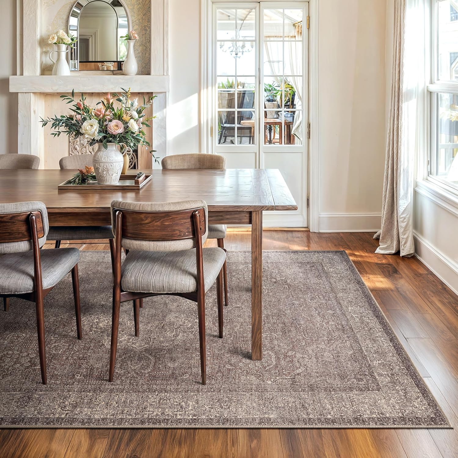 Bloom Rugs Washable Non-Slip 8' x 10' Rug - Taupe/Beige Traditional Medallion Area Rug for Living Room, Bedroom, Dining Room, and Kitchen - Exact Size: 8' x 10'