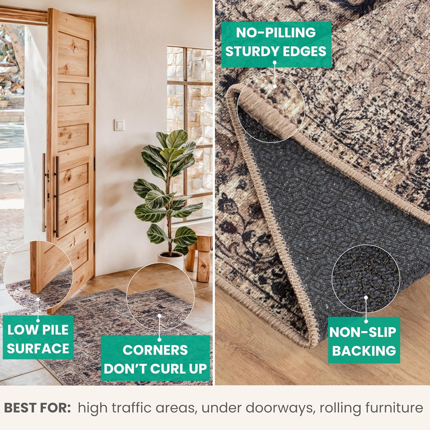 - EASY TO SETUP AND NON-SLIP: This one-piece machine washable rug with non-slip backing attached eliminates any additional setup. Simply unfold and lay flat upon arrival in the desired space. Non-slip backing prevents the rug from moving or sliding without the need for additional rug pad or grippers.