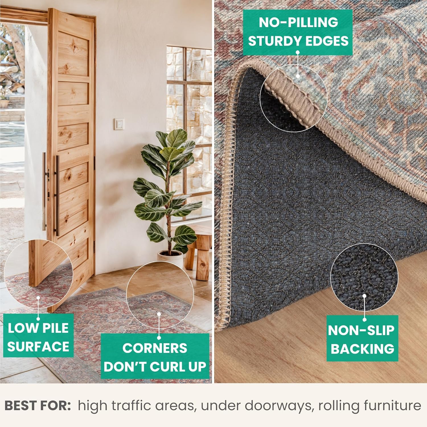 - EASY TO SETUP AND NON-SLIP: This one-piece machine washable rug with non-slip backing attached eliminates any additional setup. Simply unfold and lay flat upon arrival in the desired space. Non-slip backing prevents the rug from moving or sliding without the need for additional rug pad or grippers.