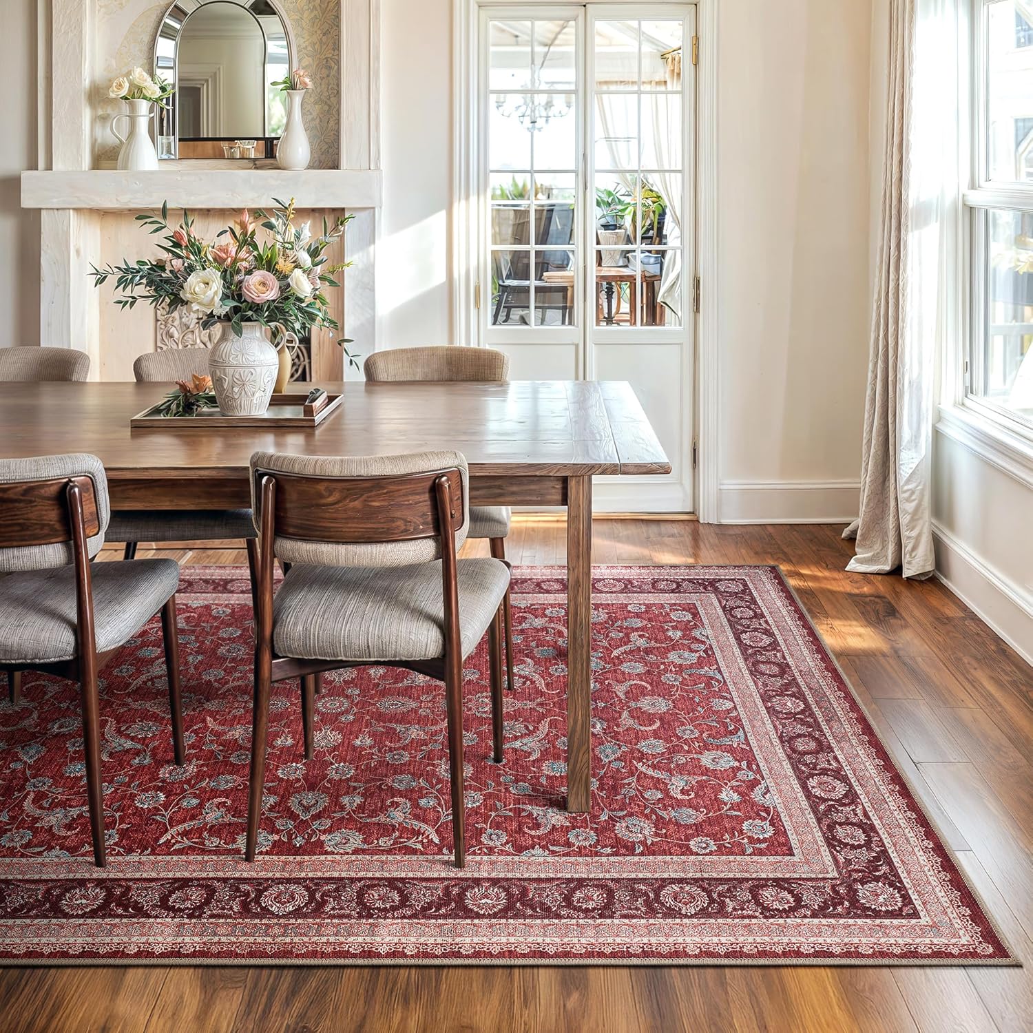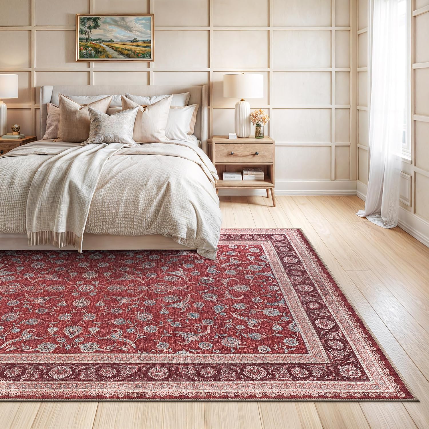 Bloom Rugs Washable Non-Slip 8' x 10' Rug - Red/Beige Traditional Bordered Area Rug for Living Room, Bedroom, Dining Room, and Kitchen - Exact Size: 8' x 10'