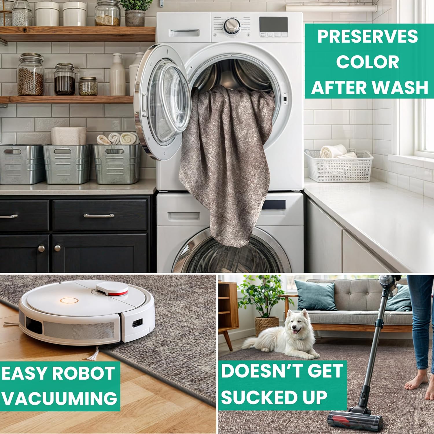 - MACHINE WASHABLE: Machine wash on delicate cycle (do not use bleach) at 85°F (30°C) and line dry or dry on air-only cycle without heat. Vacuum regularly and spot clean small stains. This easy to clean rug is perfect for families with kids and pets, and for high traffic areas.