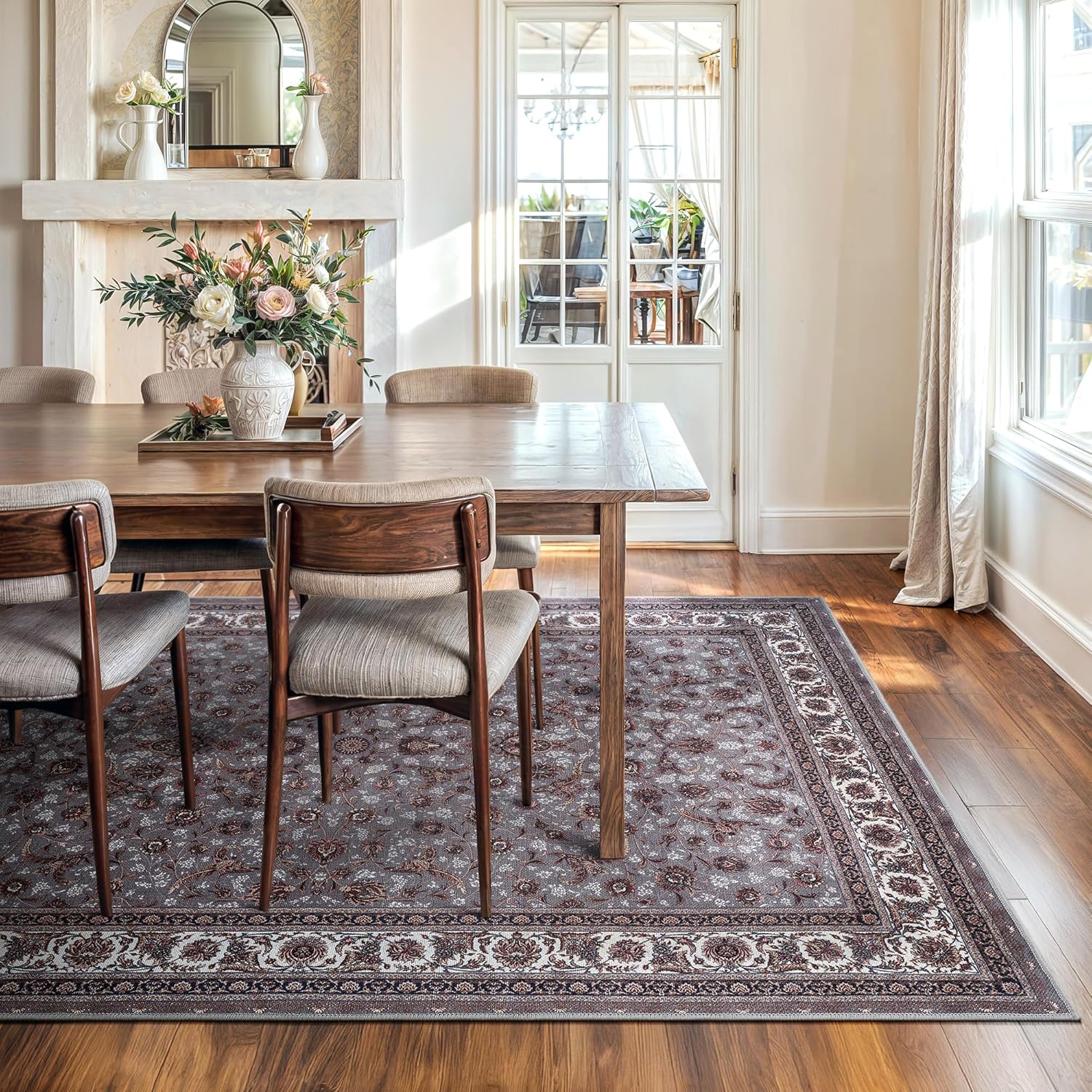 Bloom Rugs Washable Non-Slip 8' x 10' Rug - Slate Gray Traditional Oriental Area Rug for Living Room, Bedroom, Dining Room, and Kitchen - Exact Size: 8' x 10'