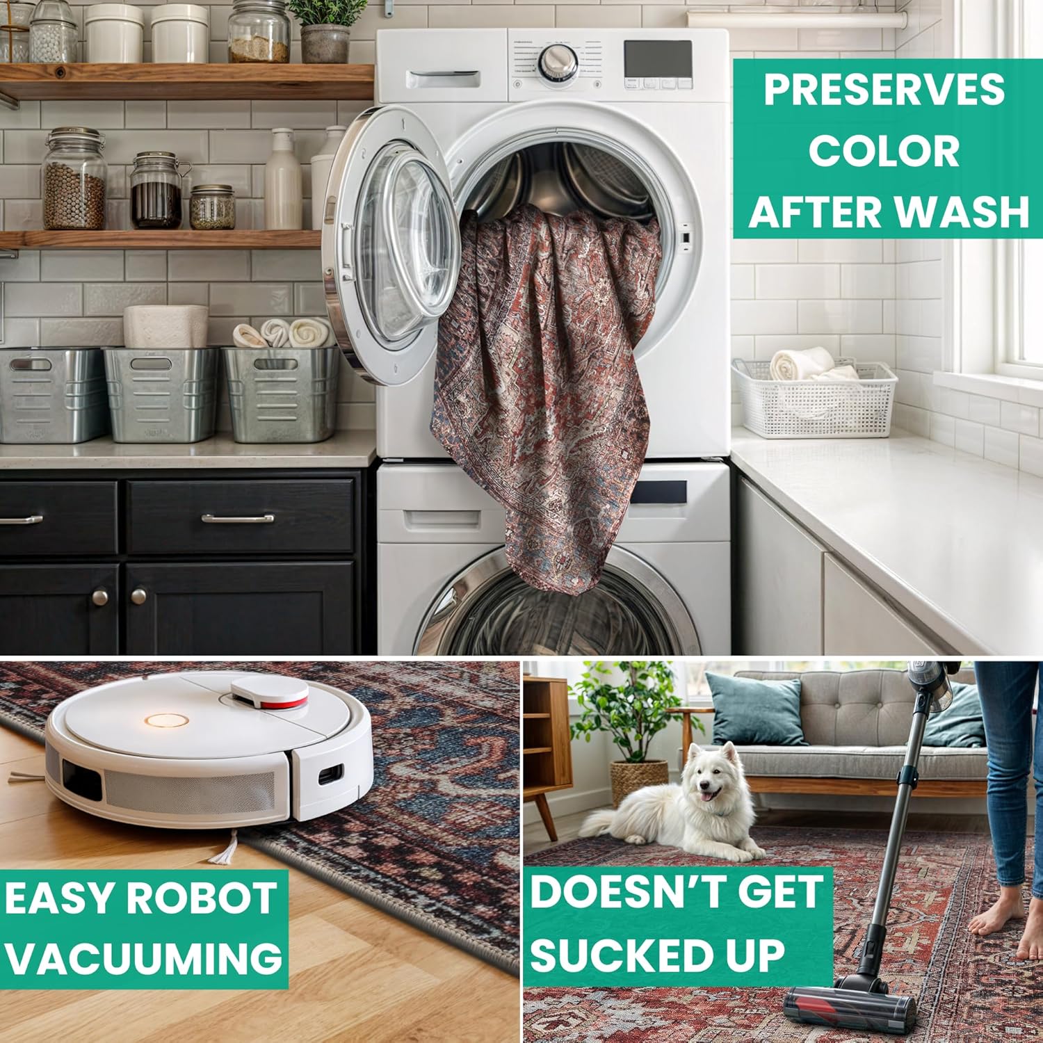 - MACHINE WASHABLE: Machine wash on delicate cycle (do not use bleach) at 85°F (30°C) and line dry or dry on air-only cycle without heat. Vacuum regularly and spot clean small stains. This easy to clean rug is perfect for families with kids and pets, and for high traffic areas.