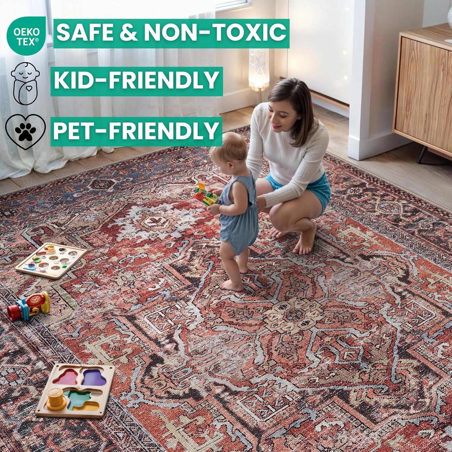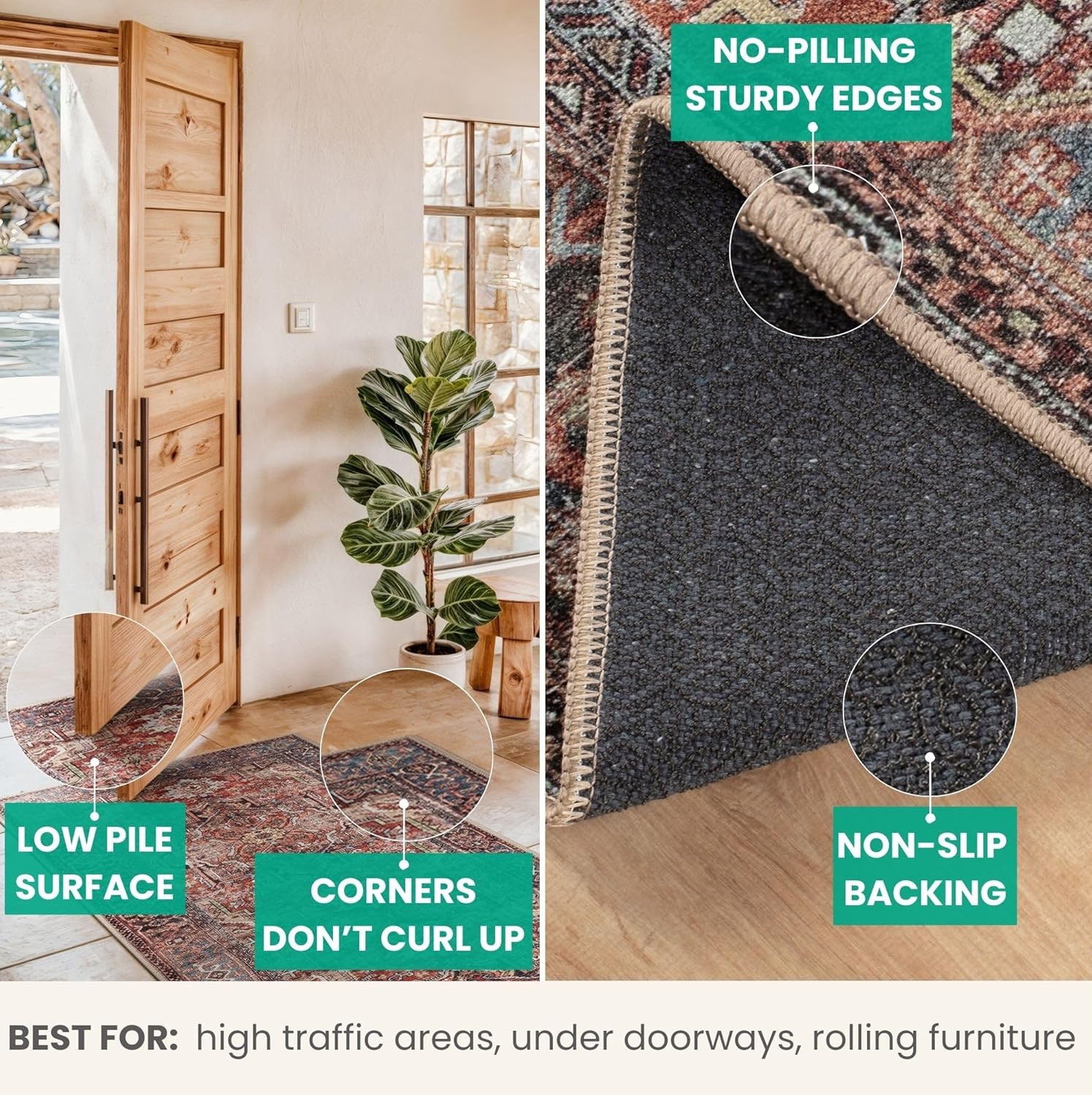 - EASY TO SETUP AND NON-SLIP: This one-piece machine washable rug with non-slip backing attached eliminates any additional setup. Simply unfold and lay flat upon arrival in the desired space. Non-slip backing prevents the rug from moving or sliding without the need for additional rug pad or grippers.