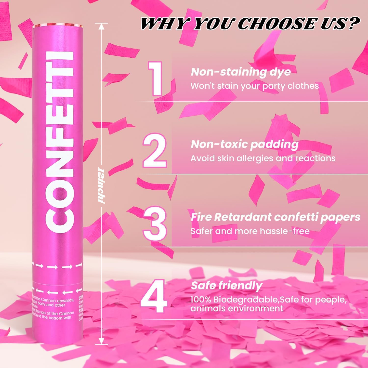 - 【Satisfaction After Sale】Make your every celebration a perfect memory with our cutes pink confetti cannon. If you're unsatisfied with our confetti poppers in any way, please let us know. Our customer service team will take care of all issues promptly and efficiently to make sure that you're fully satisfied.