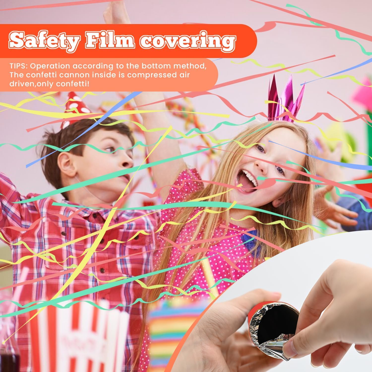 - 【WARM TIPS】 Confetti cannon can fly at a height of 15-20 feet.To avoid accidental injury, streamer poppers should be shot into the sky when in use, and don't aim at people or faces.If you have any dissatisfaction with our streamer cannon, feel free to contact us.We provide high-quality products and 24-hour after-sales service.