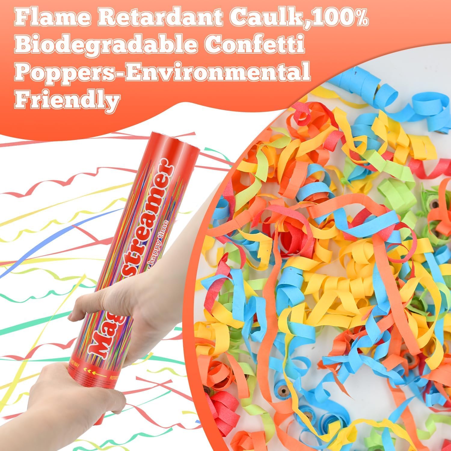 - 【12 Inch Multicolor Confetti Cannon】100% paper confetti poopers can break down organically and non-toxic. Multi-color streamer popper confetti cannon are both green and easy to clean, multicolor party poppers confetti shooters work well indoors and outdoors.