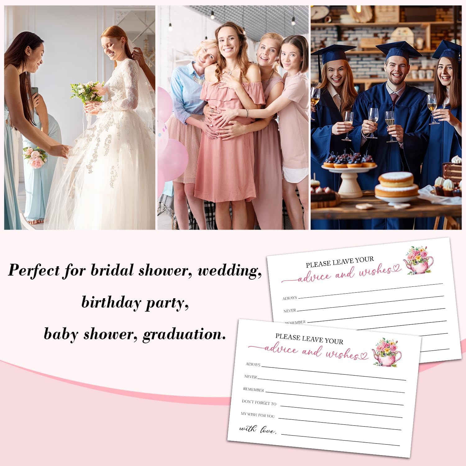 25 Advice and Wishes Cards, Floral & Teapot Fill-In Advice Cards for Bridal Shower Wedding Birthday Party Baby Shower Graduation Party, Well Wishes Card for Mr & Mrs Adults, Party Supplies -06