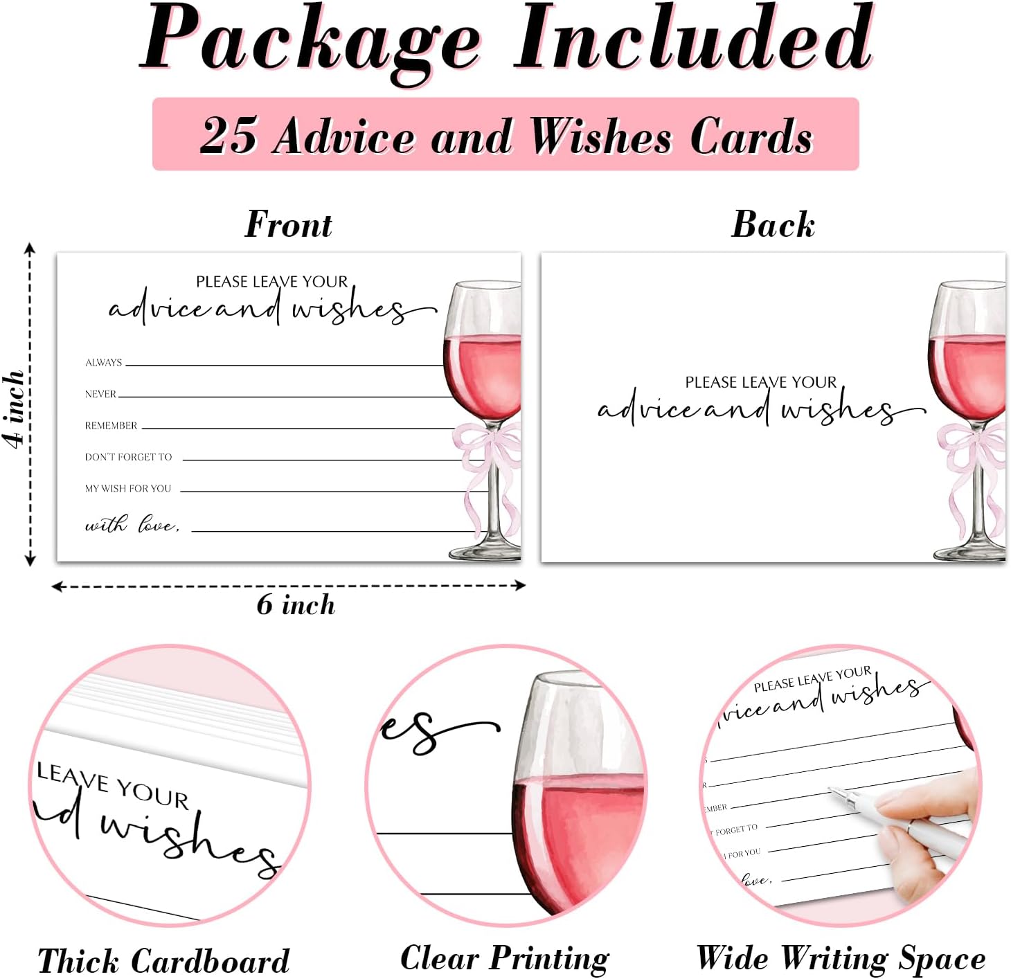 25 Advice and Wishes Cards, Red Wine & Bow Fill-In Advice Cards for Bridal Shower Wedding Birthday Party Baby Shower Graduation Party, Well Wishes Card for Mr & Mrs Adults, Party Supplies -05