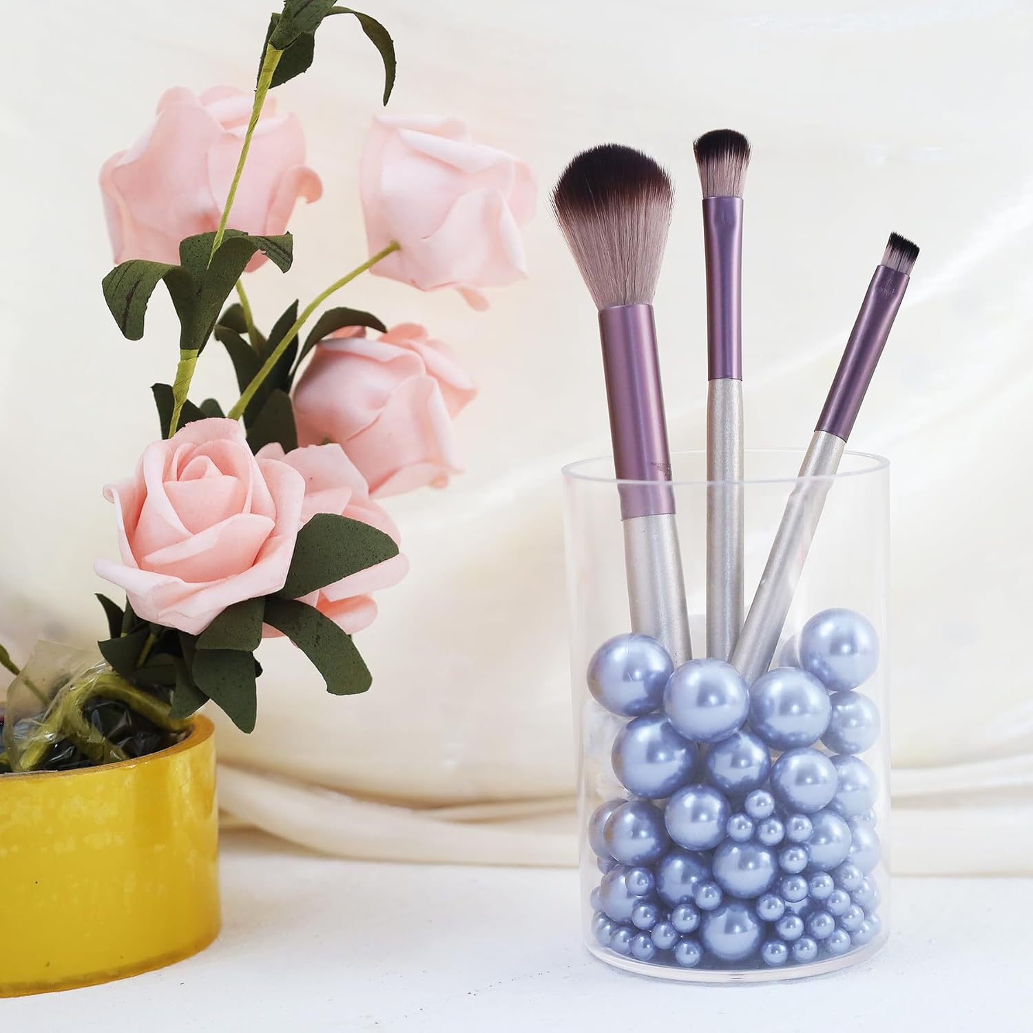 260Pcs Greyblue Glossy Beads for Centerpiece Decor, Artifical Pearls Vase Filler, Makeup Brush Beads, No Hole Round Pearl Beads for Wedding Birthday Christmas Party Home Decor(18mm 14mm 6mm)