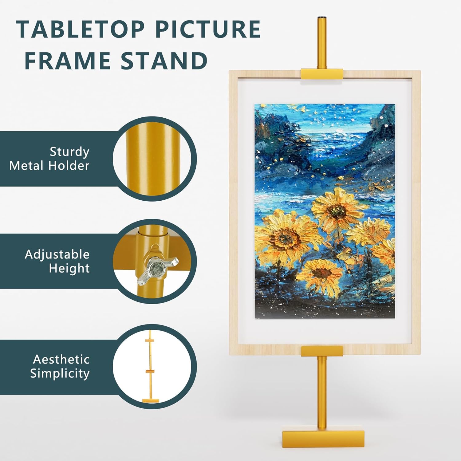 Tabletop Picture Frame Stand, Adjustable for Frames Up to 29" H, Frame Holder Stand Table Easels for Display, Metal Standing Easel Display Stand for Picture Frames, Artwork, Canvas (Gold)