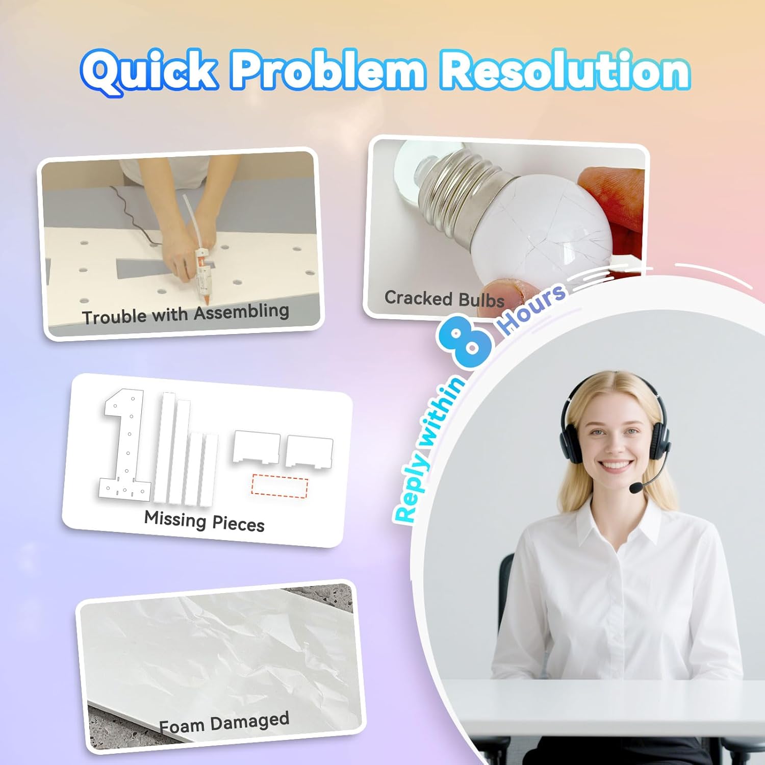 - 【Assembly Required】 4FT Marquee letters are composed of pre-cut foam plates, and also include a remote control, bulbs, and corresponding LED light strings. The product comes with detailed installation instructions and video installation tutorials, making it easy for one person to assemble. When these large light up letters and letters come on, your party can achieve amazing decorative effects.