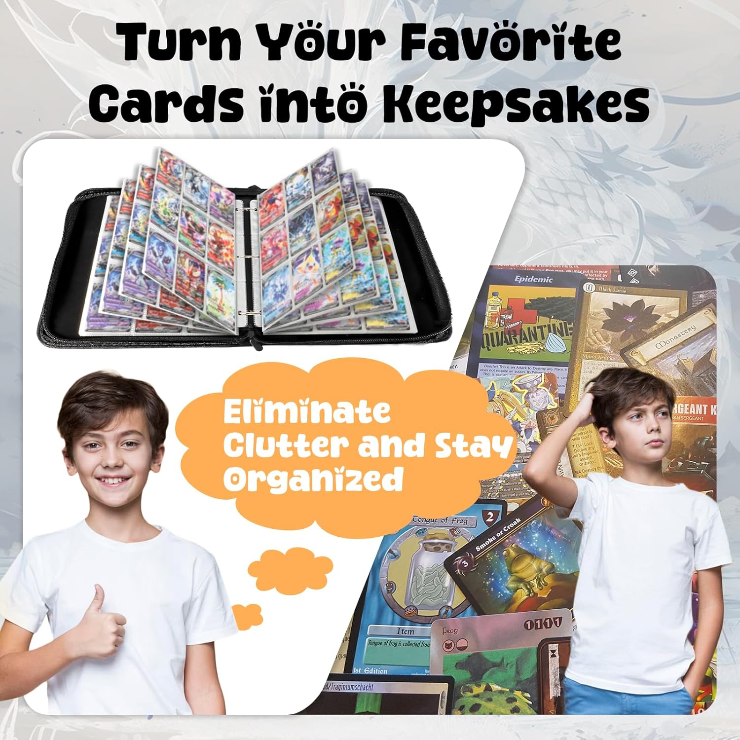 - High-Capacity Reversible Storage : 50 pages (8 cards per page) hold up to 400 cards, with reversible design for vertical. Expandable slots fit thick booster packs.