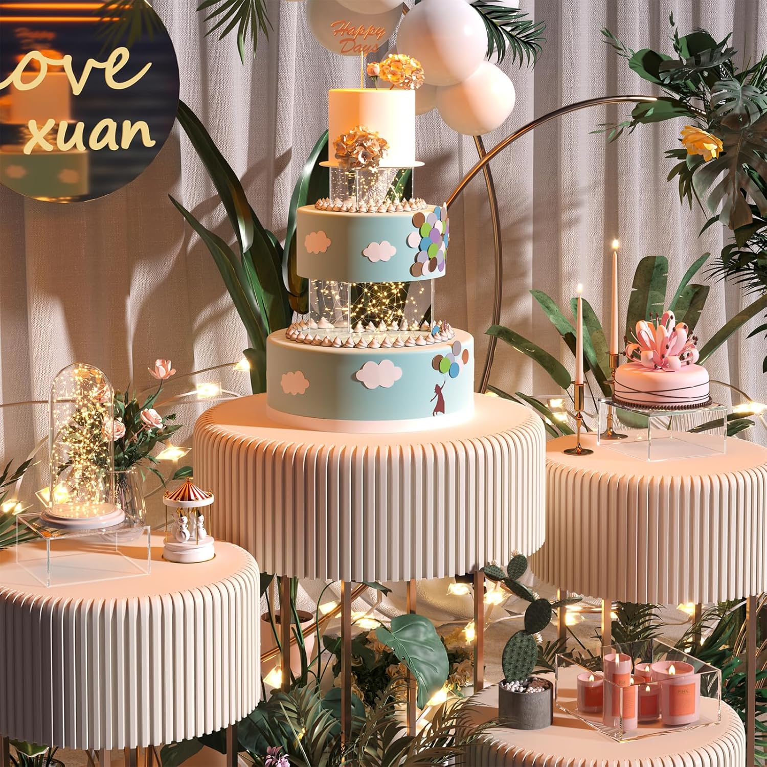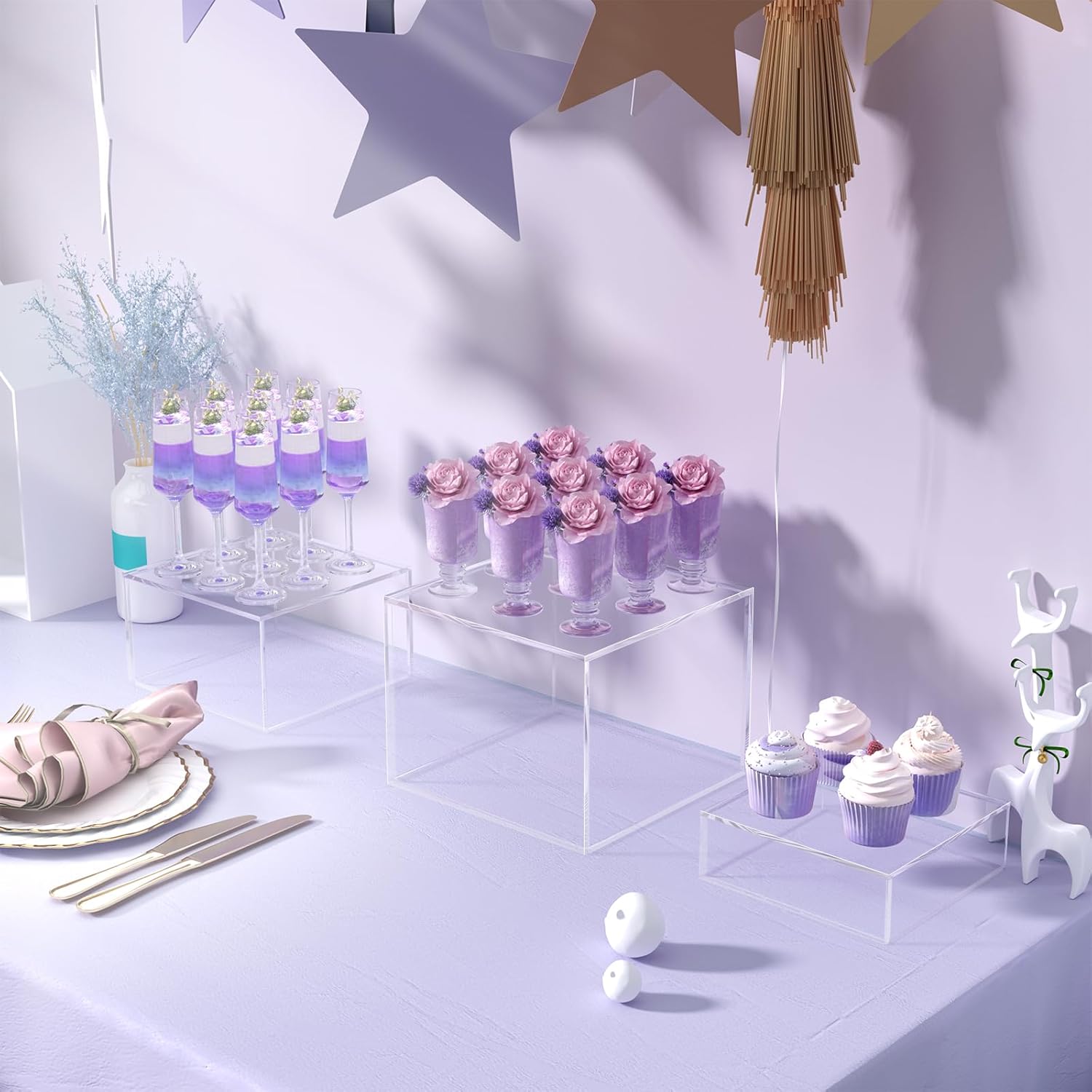 - 【Nesting Design & DIY Your Party】 The different size of acrylic cube box with hollow bottom that could be easy to nest and stack. You could DIY to display cakes, drinks and flowers at freedom with these different height and size of food risers for your party. It will definitely leave a deep impression for your family and friends