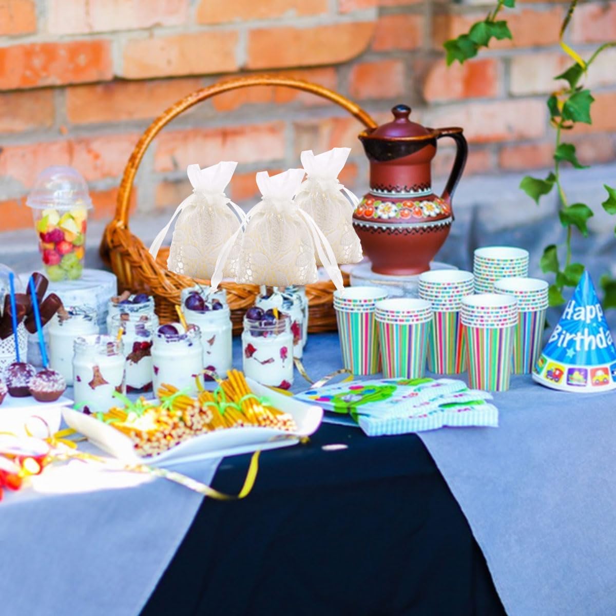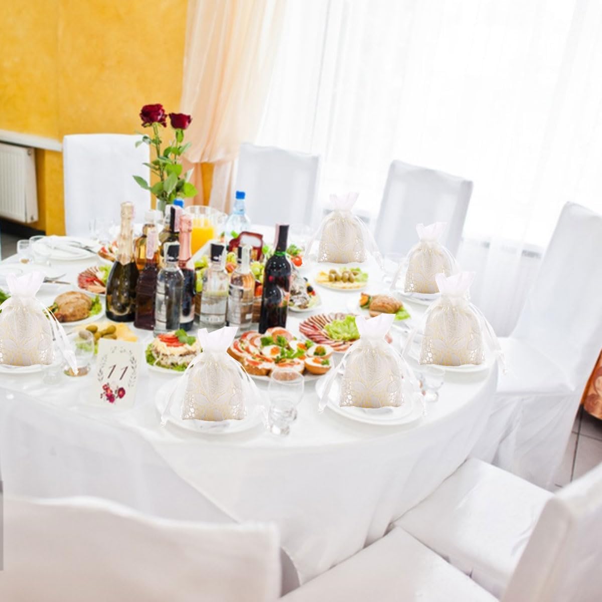 Ewanda store 8Pcs Lace Organza Drawstring Bags White Leaf Cotton Drawstring Bag for Wedding Christmas Birthday Party Favors Jewelry Pouches