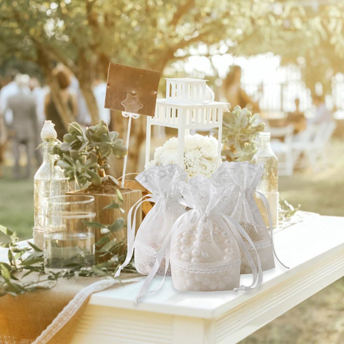 Ewanda store 20Pcs Lace Organza Drawstring Bags Five Petal Flower White Lace Bag for Wedding Christmas Birthday Party Favors Jewelry Pouches