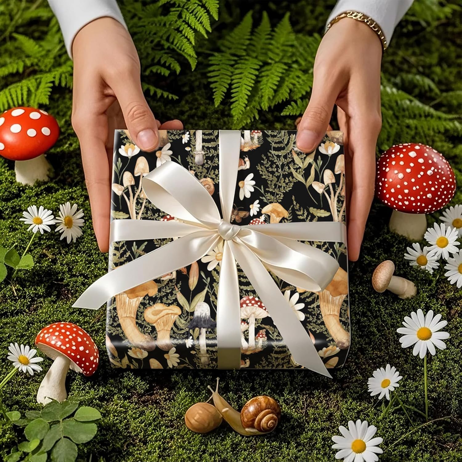 - Charming Forest Design: Features whimsical woodland elements like mushrooms, squirrels, snails, daisies and ferns, set against a rich black background. Perfect for nature lovers and fans of cozy and rustic aesthetics