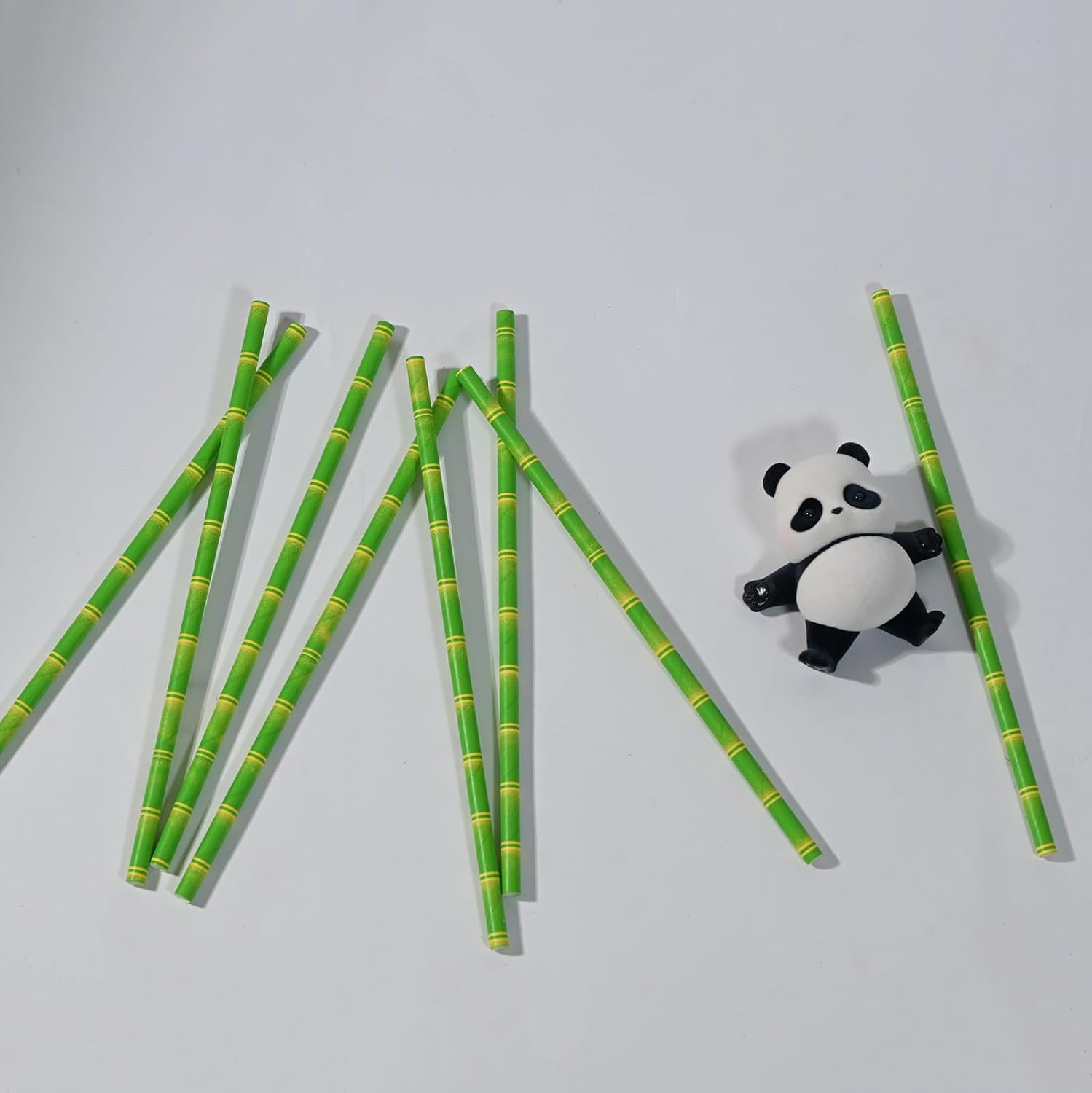 GLUJASBIO 7.75" Green Disposable Paper Straws - Biodegradable Drinking Straws for Party Suppliers, Cocktails, Juices, Drink, 100 Pack, Bamboo Pattern