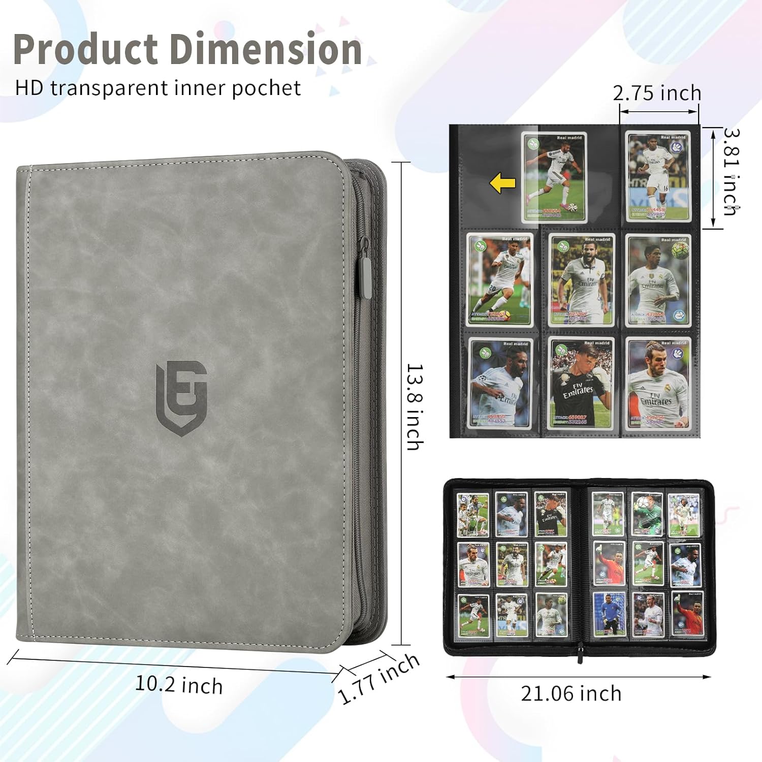 - DETAILED DESIGN:The card binder is made of premium PU leather, water or raindrops will not penetrate, different colors of the trading card binder with different colors of the zip, to meet your personalised needs. Side card pocket prevents cards from spilling out and protects your cards from fading and staining