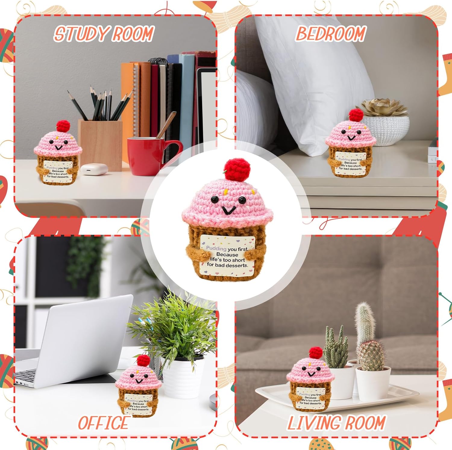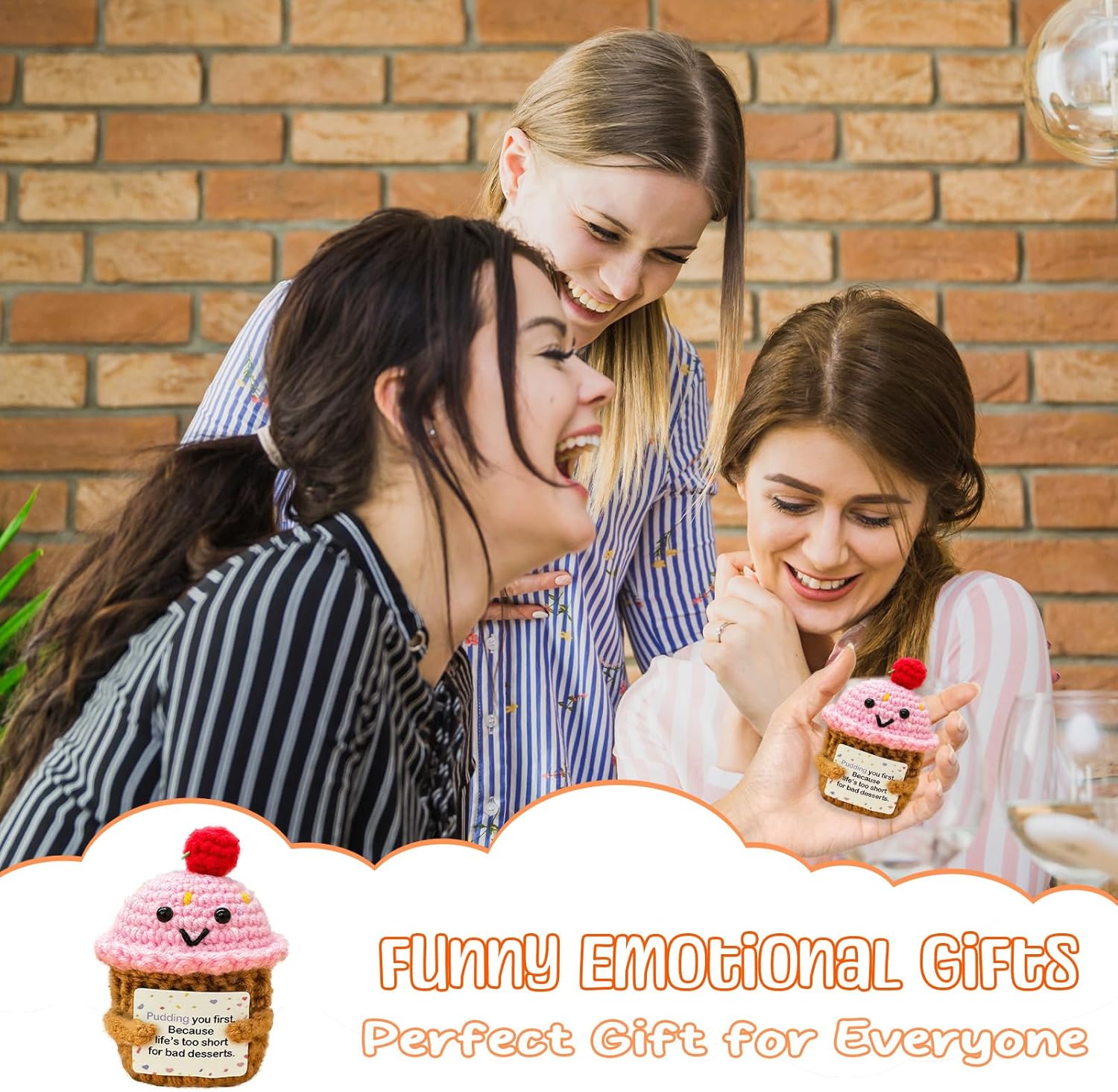 Emotional Support Crochet Pudding,Sweet Gifts for Women Daughter Sister Friend Student Birthday Graduation,Handmade Pudding Little Reminders Emotional Uplifting Support Mental Health