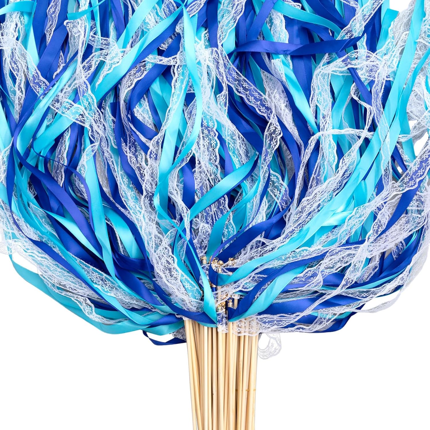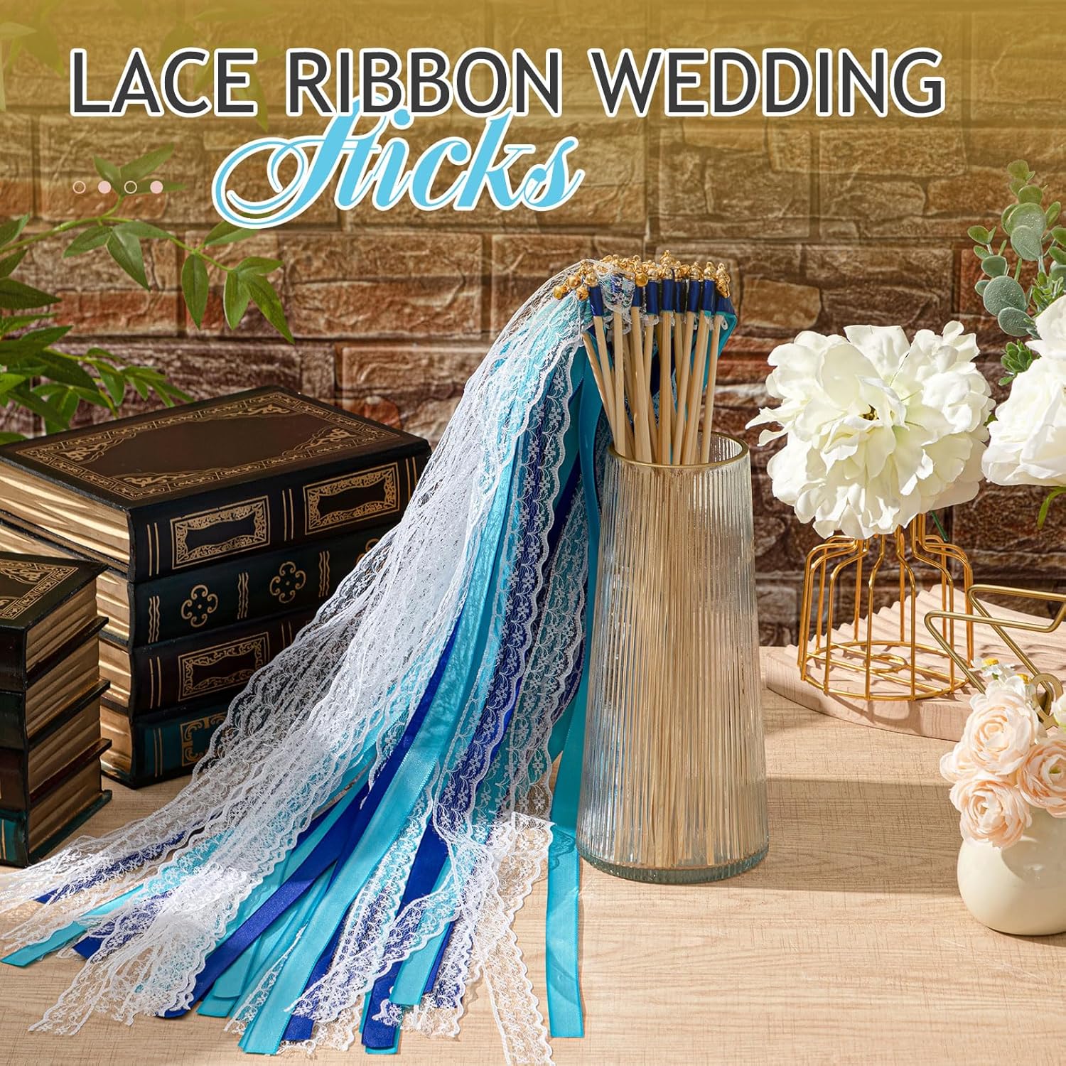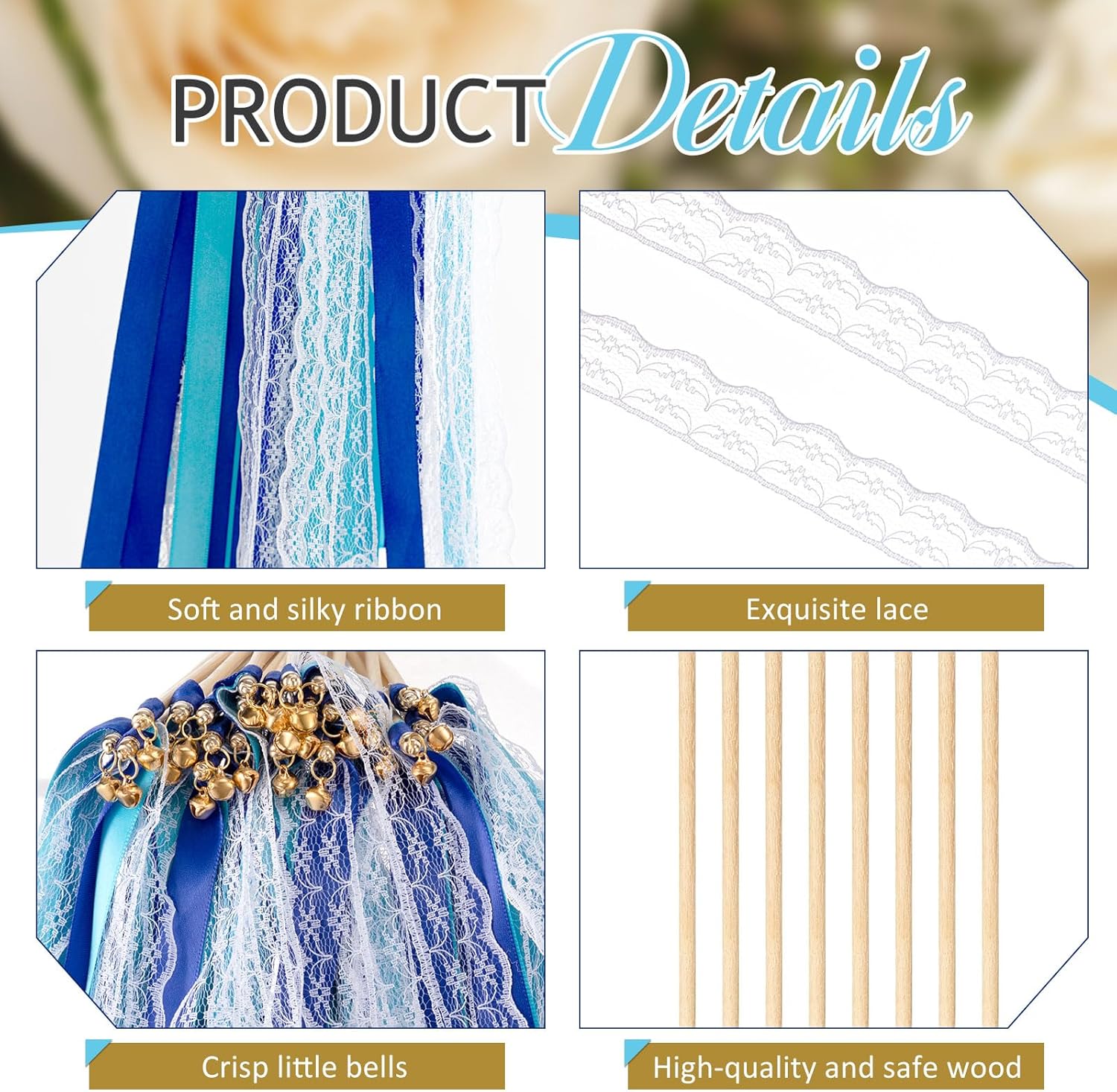 - Large Quantity: the package contains 150 pieces of wedding wands, with dark blue and light blue ribbons, white lace, bells, enough for you to decorate an impressive wedding or party; You can also share them with your family and mates