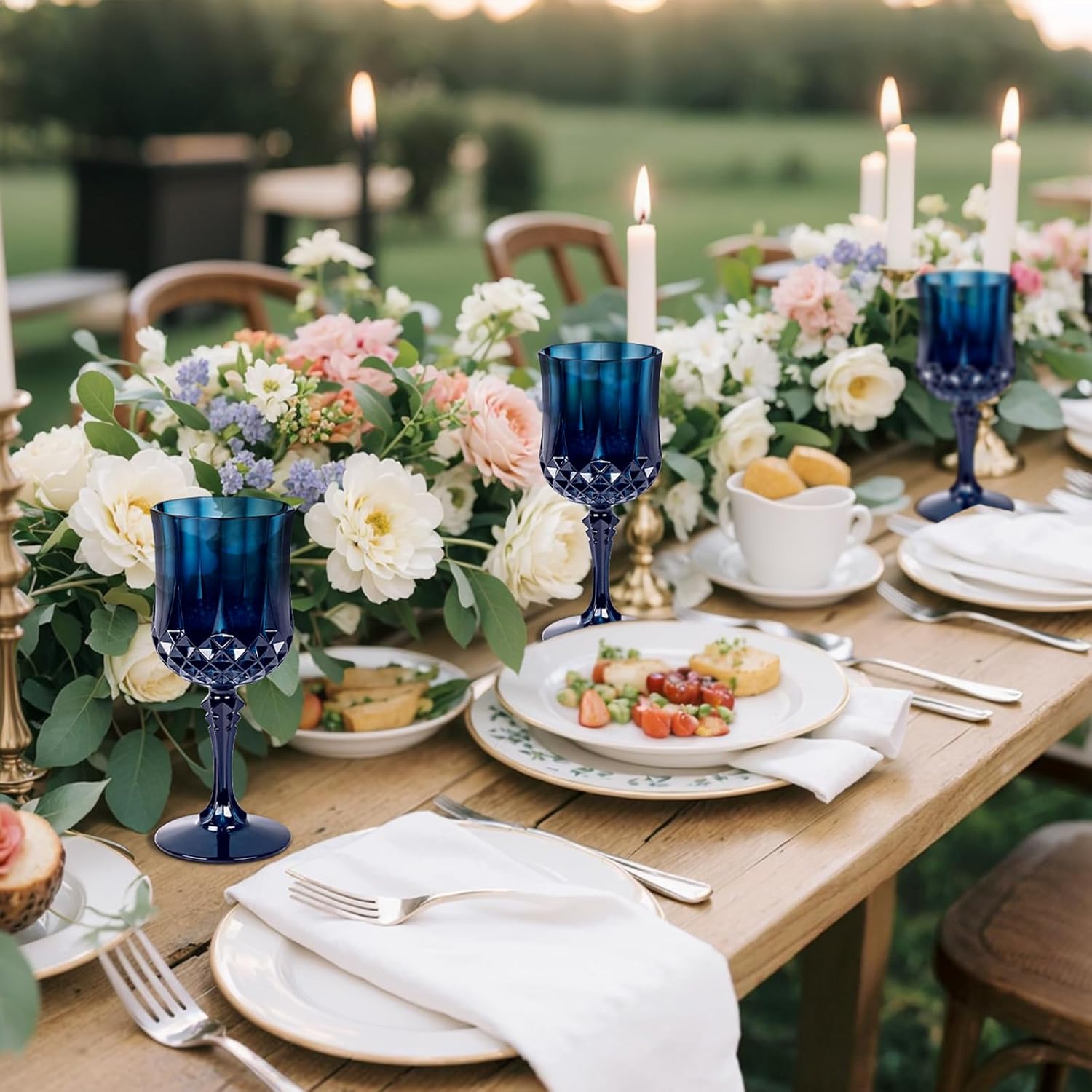 - Multi-occasion use: These 7 Oz blue plastic glasses drinking can be used in various occasions, such as entertainment events, weddings, bars, or casual gatherings. These plastic wine cups blend seamlessly with tableware. Plastic goblet glasses can not only serve as table decorations but also hold wine, beer, cocktails, juice, and so on.