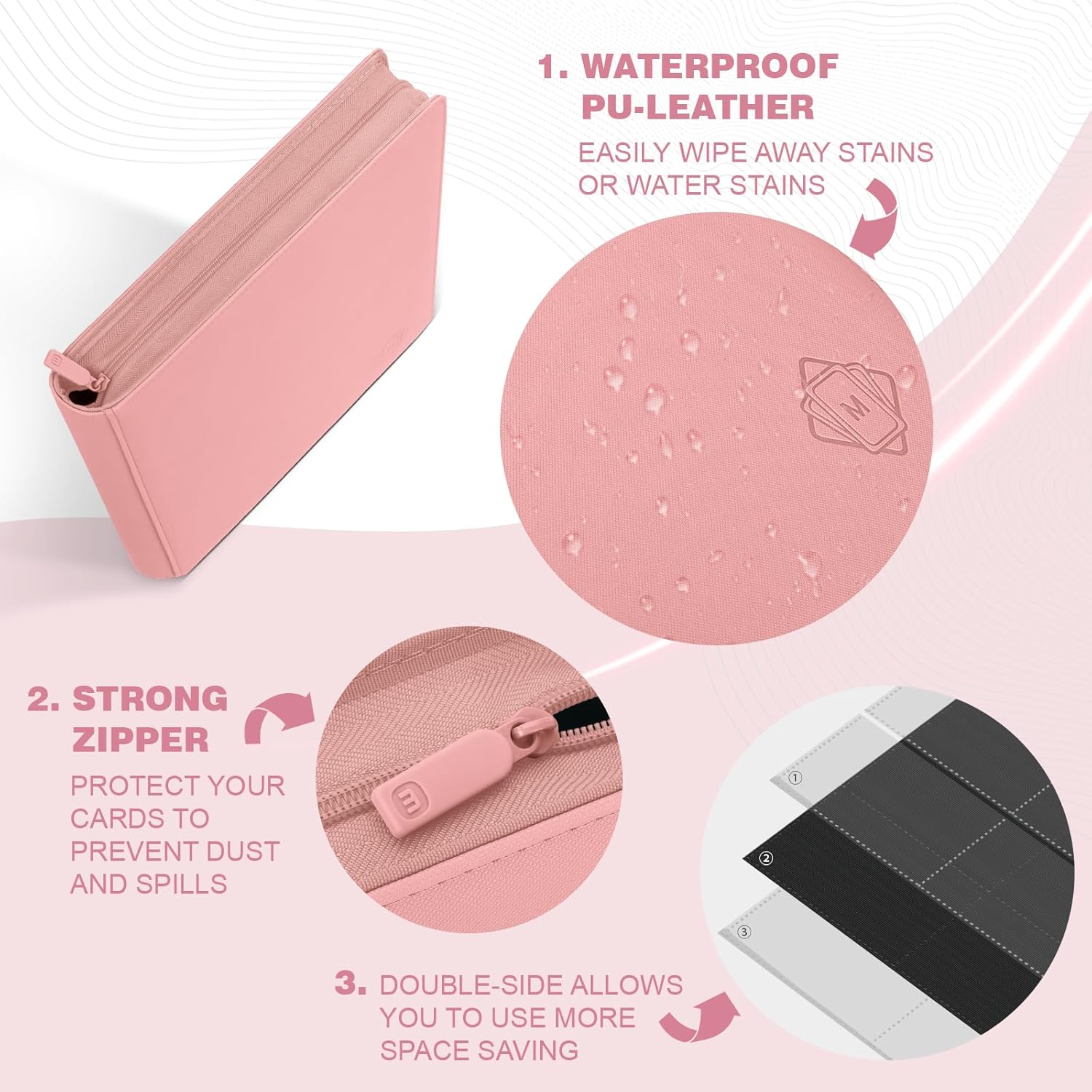 - 【PREMIUM QUALITY MATERIAL】 Our card binder is made of textured PU leather finish which is durable and comfortable. It more resistant to water and dust, Designed to keep card securely in place. Quality zipper keep cards protected and intact when not in use.The perfect way to safely browse your cards and never have to worry about your valuable cards being damaged. Offer different stylish colors to match your tastes.