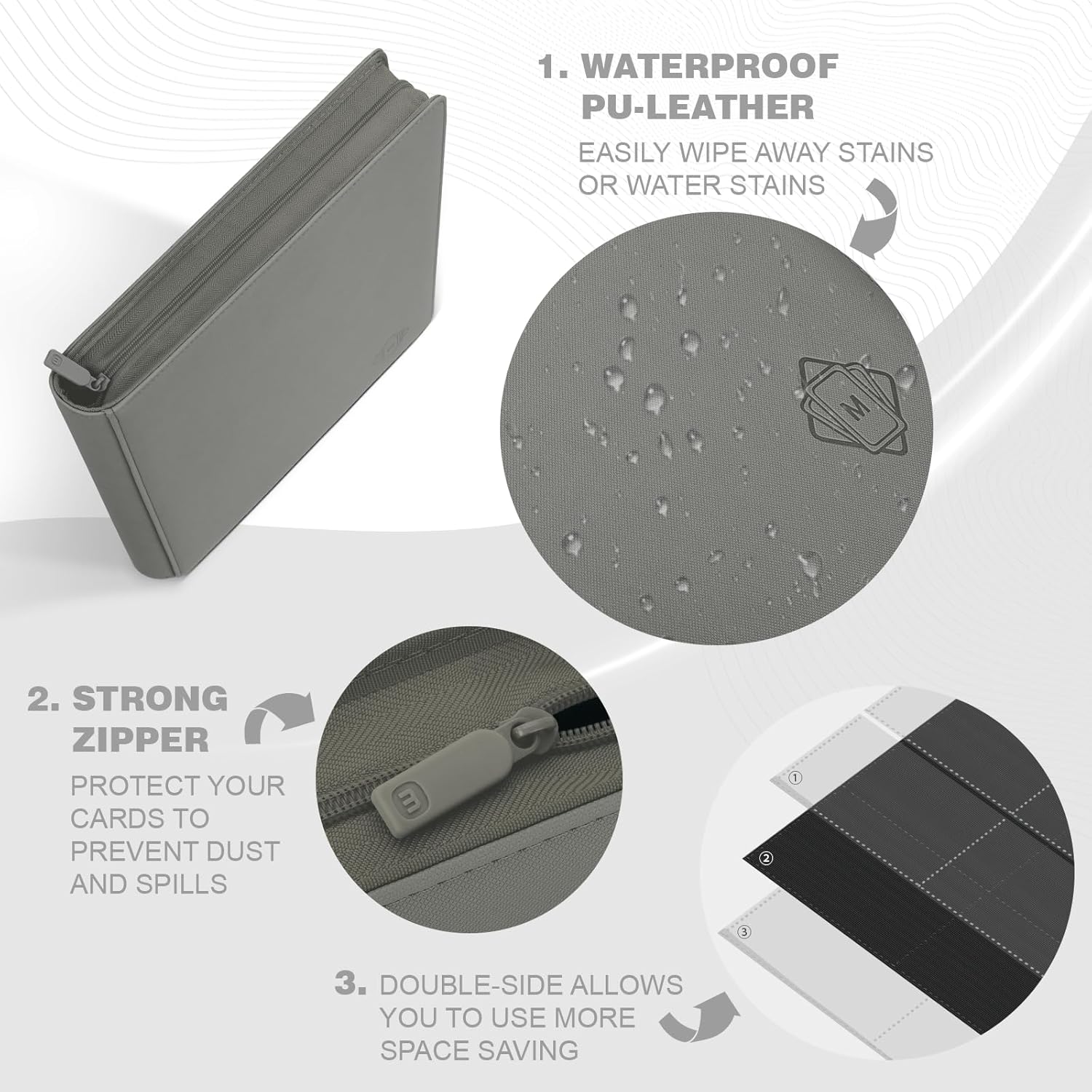- 【PREMIUM QUALITY MATERIAL】 Our card binder is made of textured PU leather finish which is durable and comfortable. It more resistant to water and dust, Designed to keep card securely in place. Quality zipper keep cards protected and intact when not in use.The perfect way to safely browse your cards and never have to worry about your valuable cards being damaged. Offer different stylish colors to match your tastes.