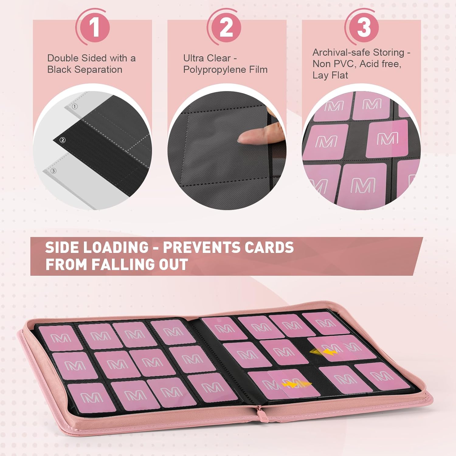 - 【SECURE CARD STORAGE】The Card Binder features a secure design that effectively stores and protects your cards from bending or tearing. With its innovative design, you can easily flip through your collection without worrying about the cards slipping out of place. Keep your valuable cards safe and organized with our card binder.