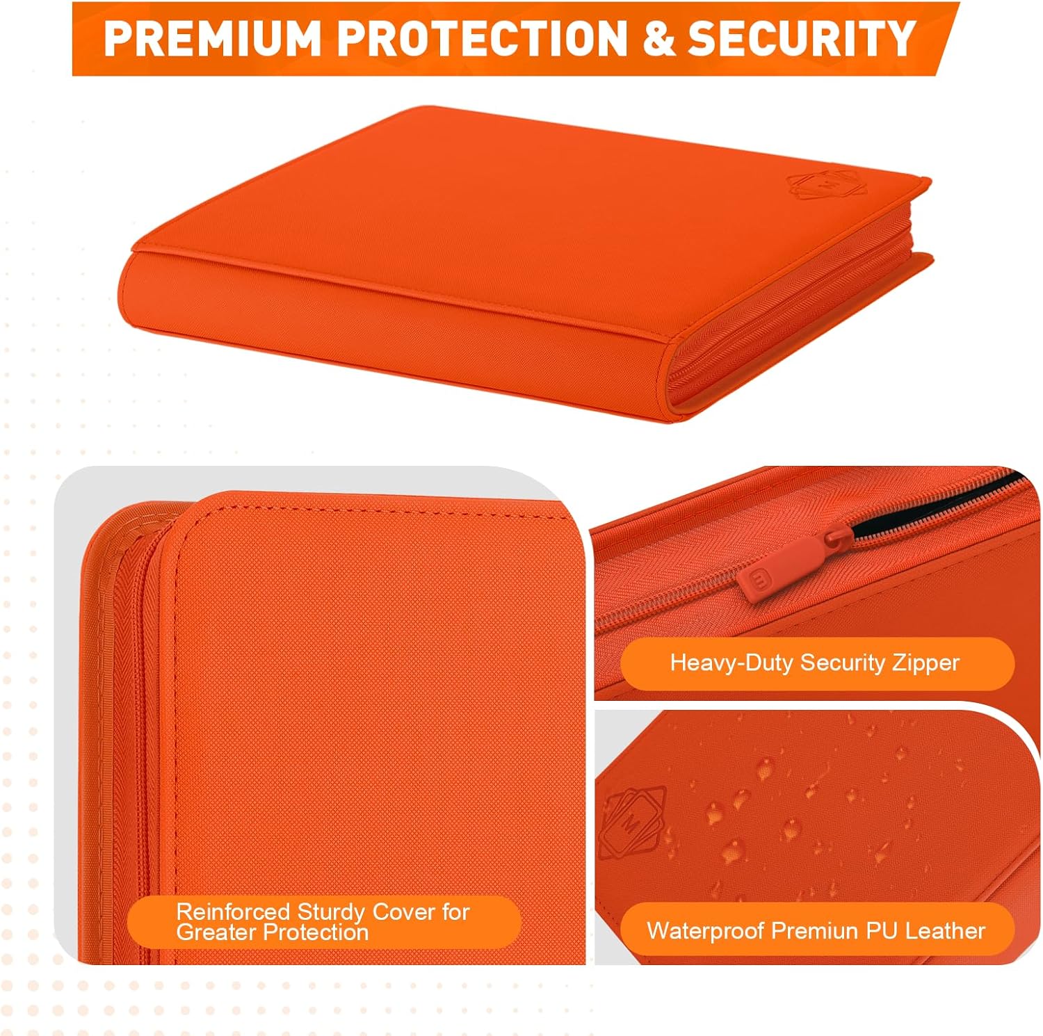 - 【PREMIUM QUALITY MATERIAL】 Card Binder is designed with textured PU leather material finish which is comfortable.this trading card binder is not only stylish but also ensures durability and long-lasting performance.The waterproof and durable card sleeves provide extra protection for your cards, keeping them safe from spills, moisture, and everyday wear and tear.