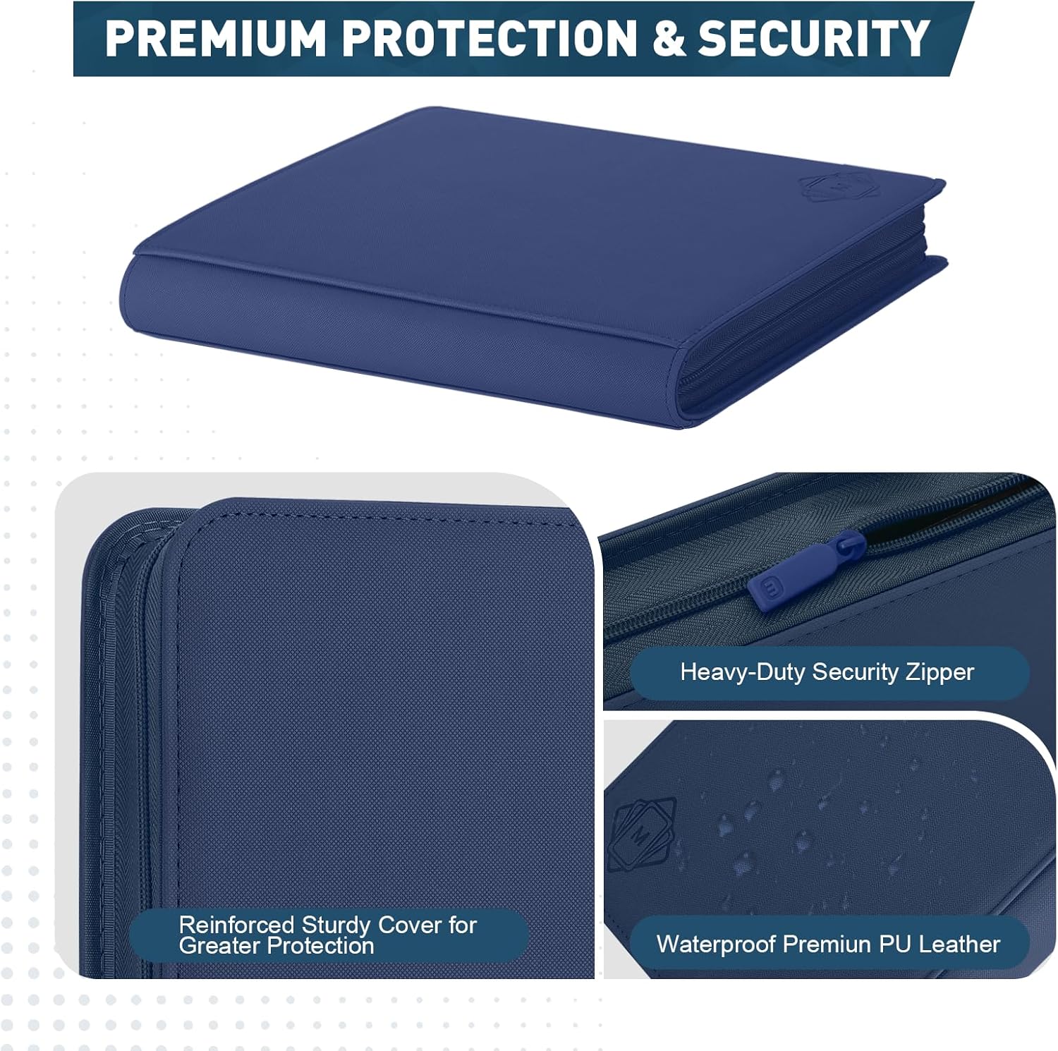 - 【PREMIUM QUALITY MATERIAL】 Card Binder is designed with textured PU leather material finish which is comfortable.this trading card binder is not only stylish but also ensures durability and long-lasting performance.The waterproof and durable card sleeves provide extra protection for your cards, keeping them safe from spills, moisture, and everyday wear and tear.