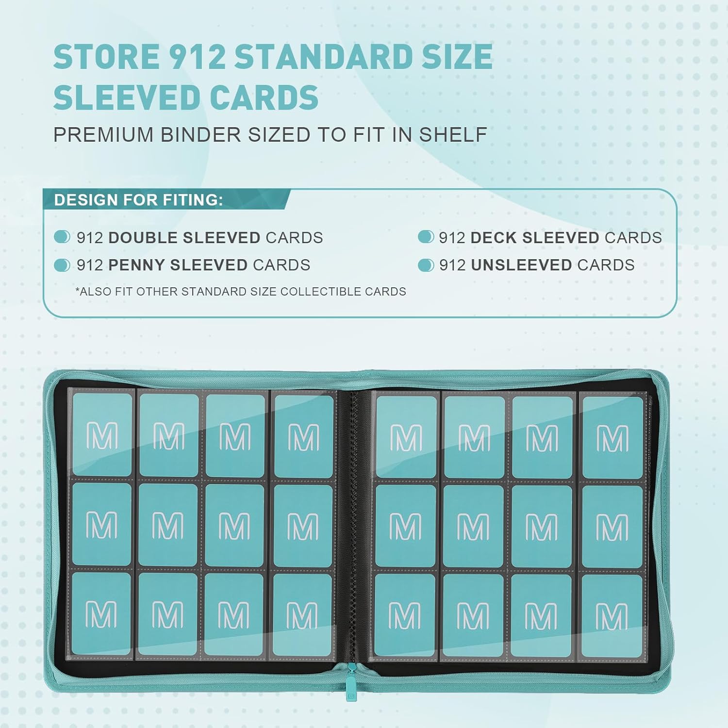 Premium Card Binder 12 Pocket for 720 Pockets Trading Card Binder, PU Zipper Card Collection Album, Sturdy Side-Loading Card Book Holder for MTG, TCG, Game Cards, Sports Cards