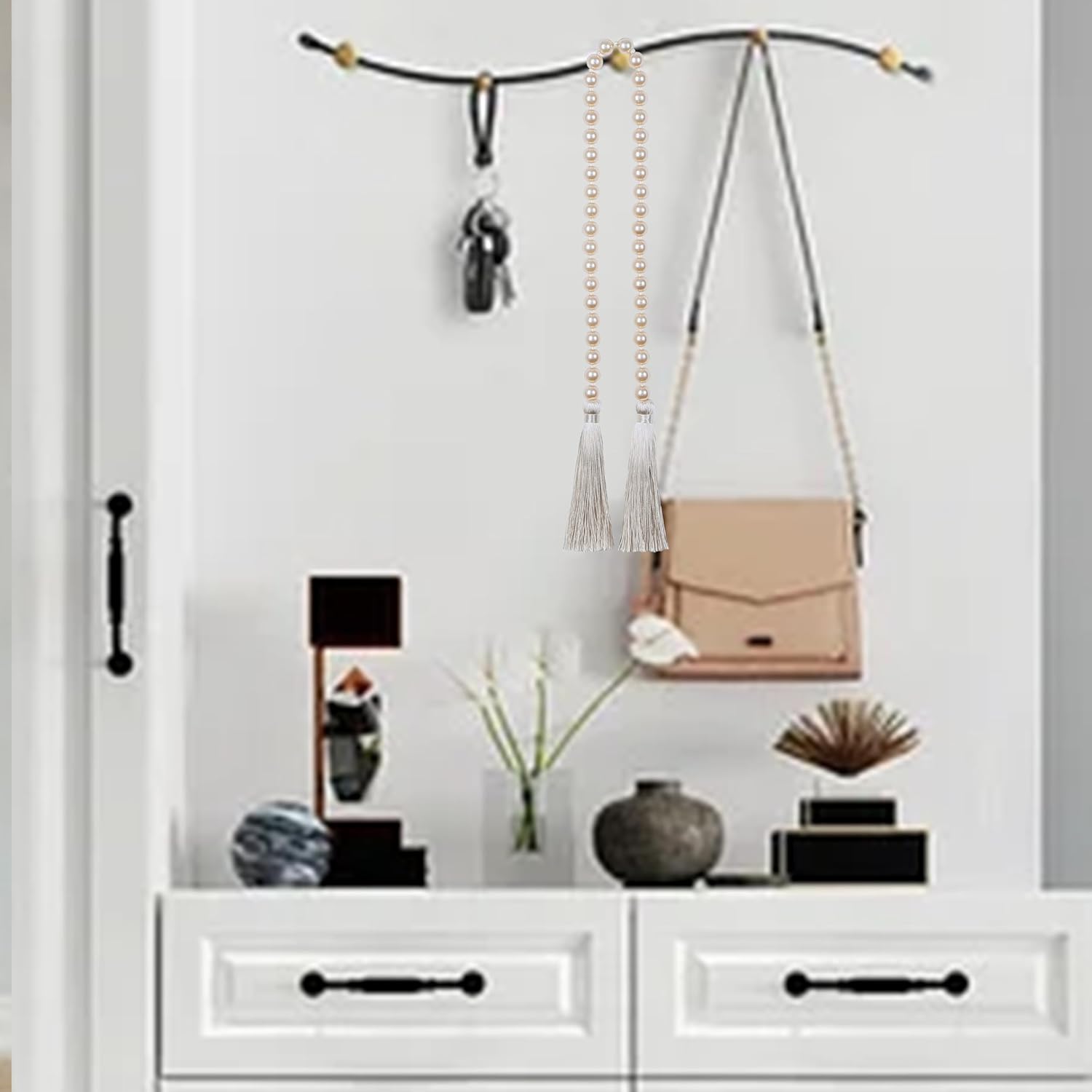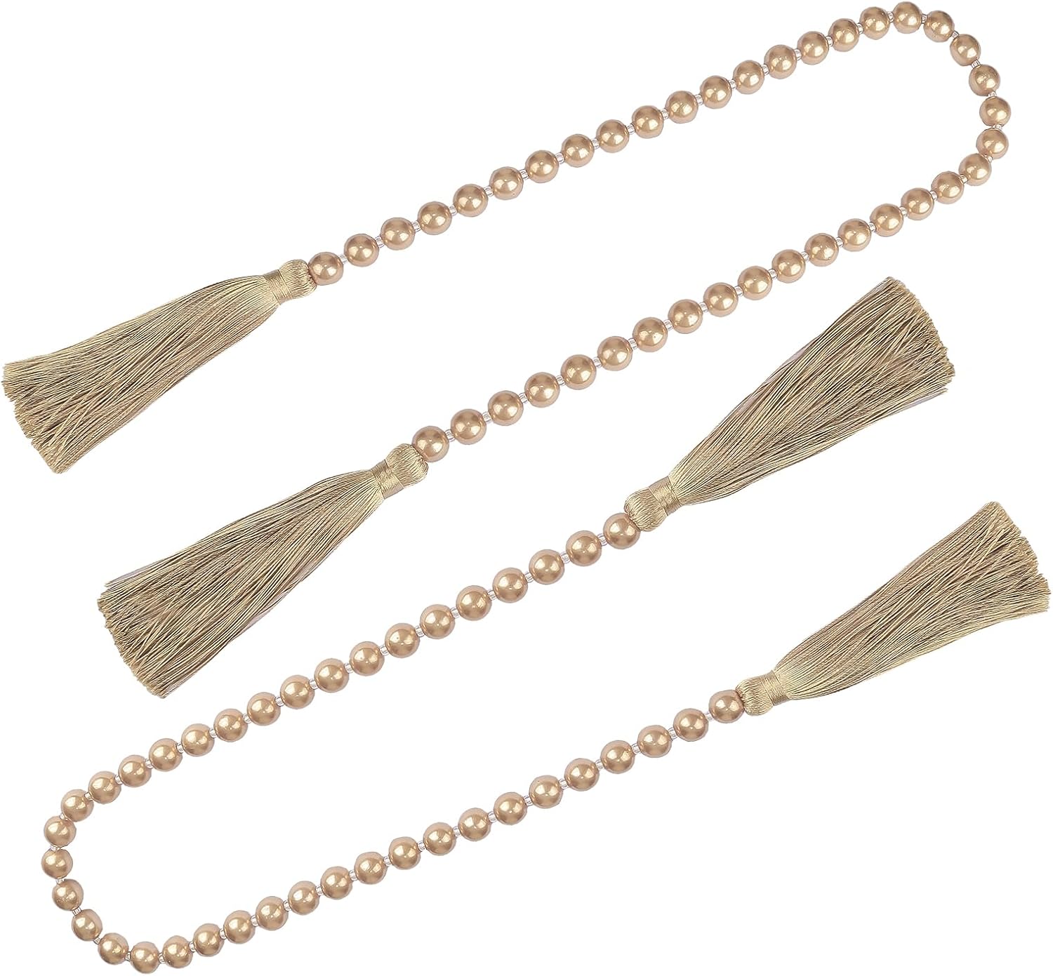 Fenghuangwu 34 Inch Pearl Glass Bead Garland with Tassels - Elegant Boho Table Decor, Fringe Wall Hanging for Wedding, Party, Farmhouse Rustic Prayer Bead Home Decoration(2 Pack,Champagne Gold)