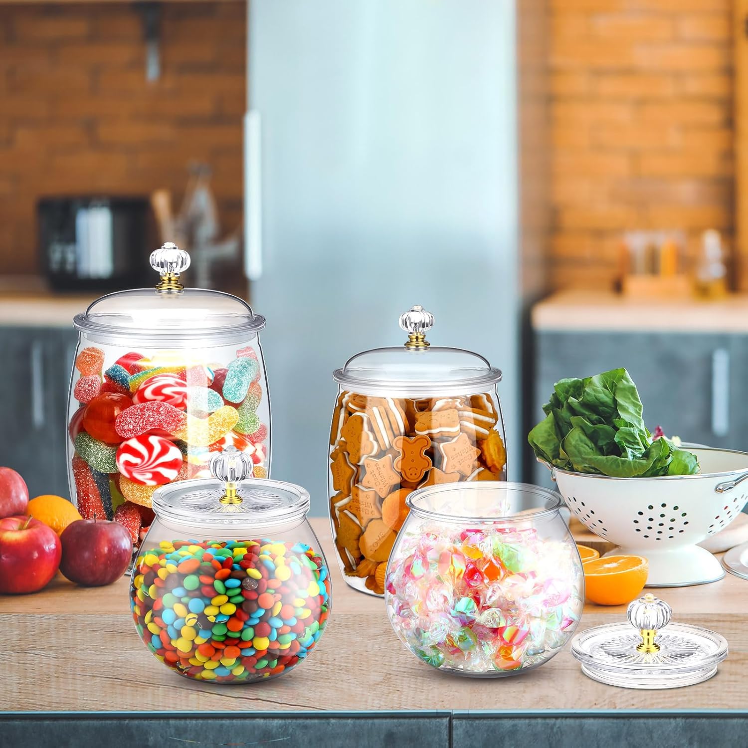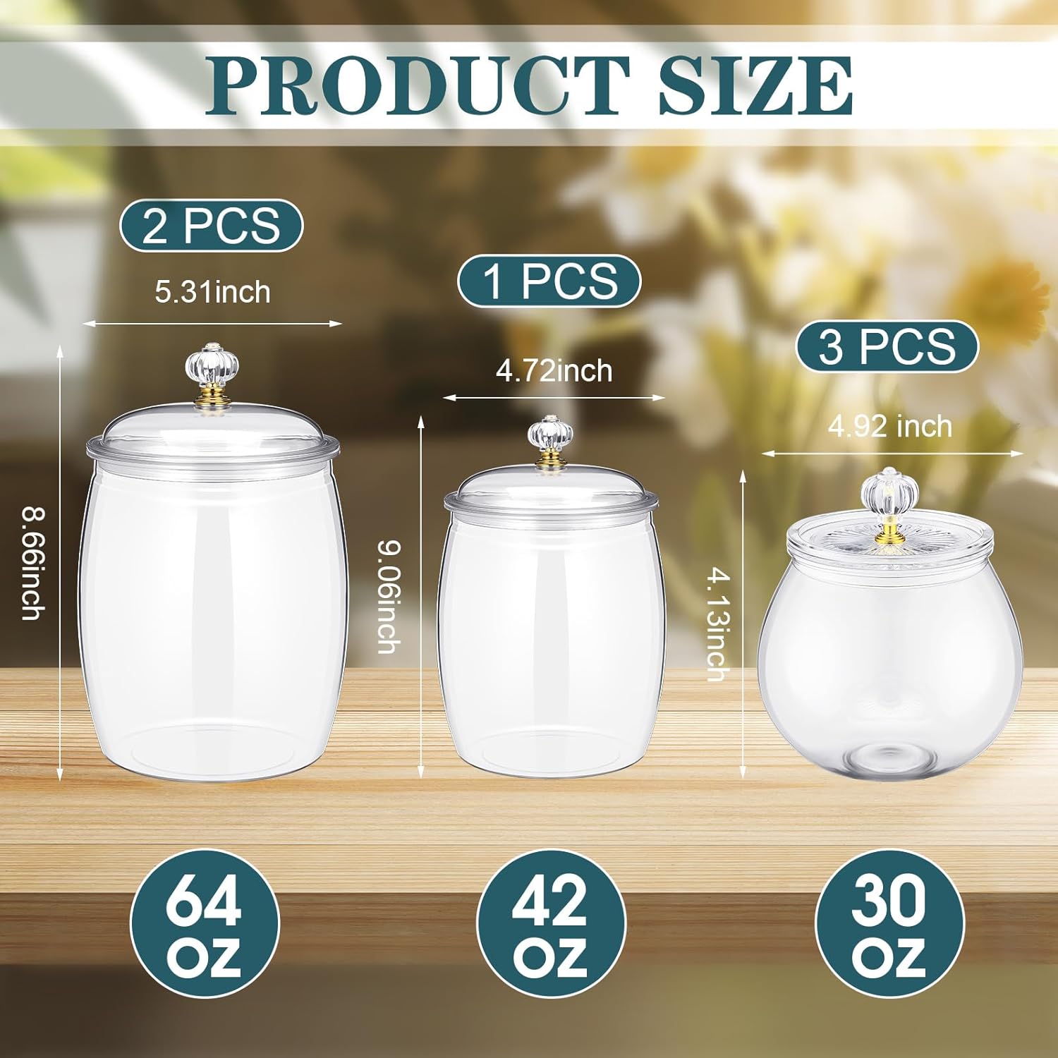 - Package Content: this pack includes 6 clear jars with lids; Each candy storage jar comes with a lid, making it ideal for those who frequently bake or entertain; The pack efficiently accommodates assorted goodies, enough quantity to meet your various requirements; Note: this product is made of plastic; Please confirm the material before purchasing