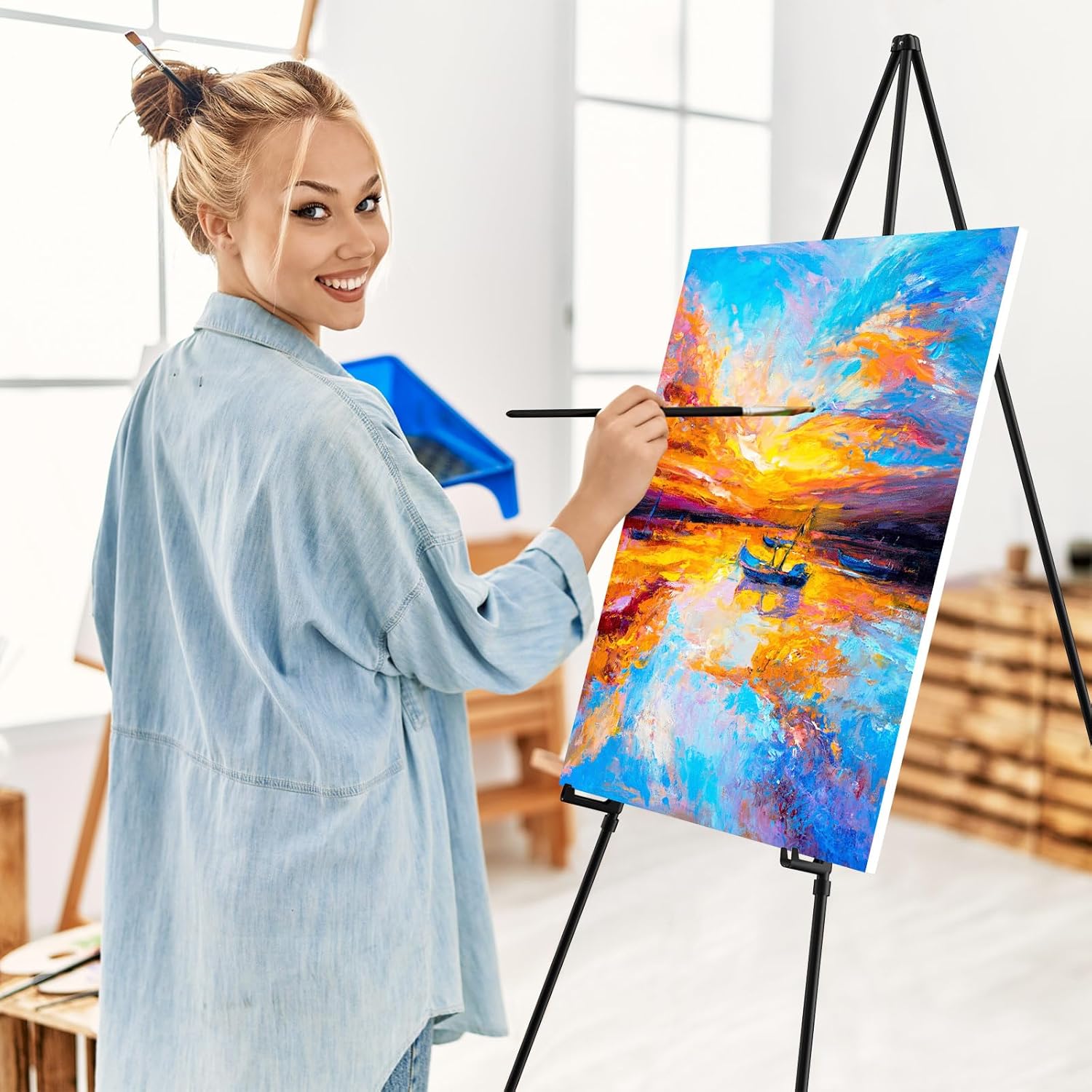 - 【Quick & Tool-Free Setup】This art easel requires no tools for setup! Its innovative design allows for quick assembly and disassembly, saving you time and effort. Perfect for last-minute sign displays, painting sessions, or art exhibitions.