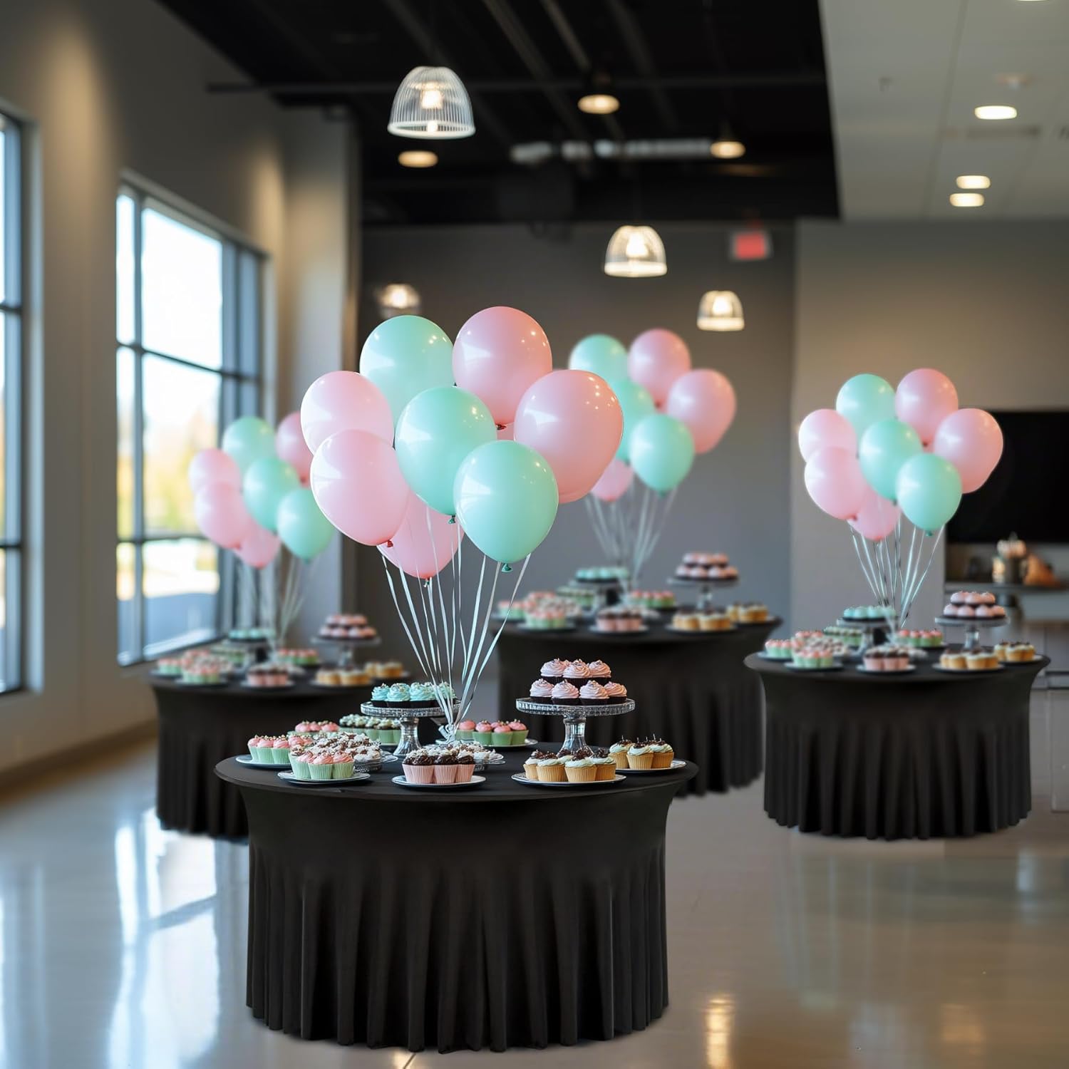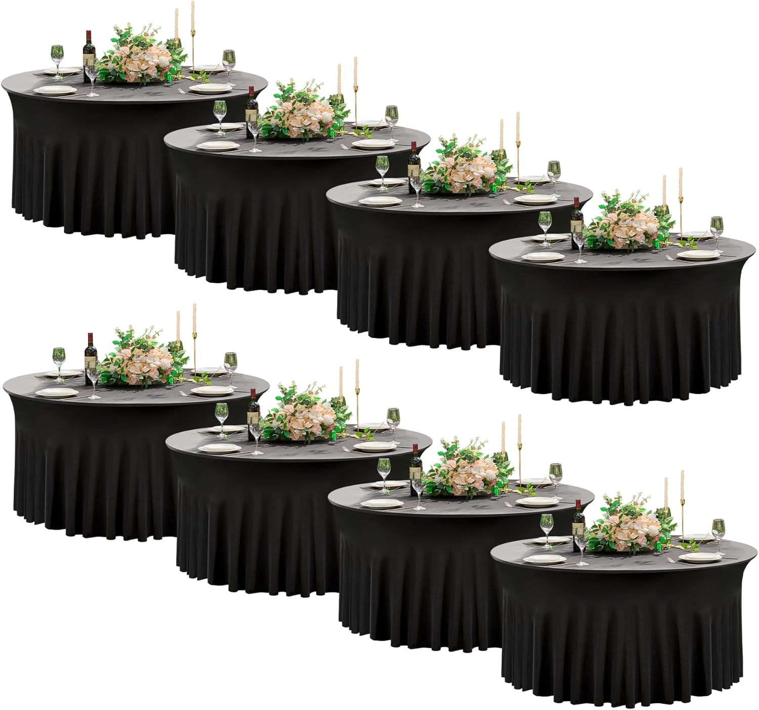 - 【Black Round Spandex Tablecloth 60 Inch】 - Your Package will come with 8 pack black round spandex tablecloths 120 inch,the diameter of each tablecloth is 60 inches and 30inch in height, to the floor and tighy fitted 5ft round party tables.Manteles de mesa de tela para fiestas.