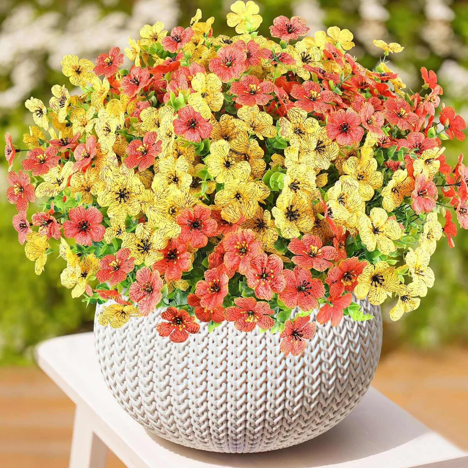 - UV Resistant and Never Fade - Faux outdoor flowers are made from high-quality plastic. Designed for outdoor decoration. It's UV resistant and never fades, has fresh color, and is poisonless and harmless. These silk bushes will never die off, and can against fierce wind rainstorms
