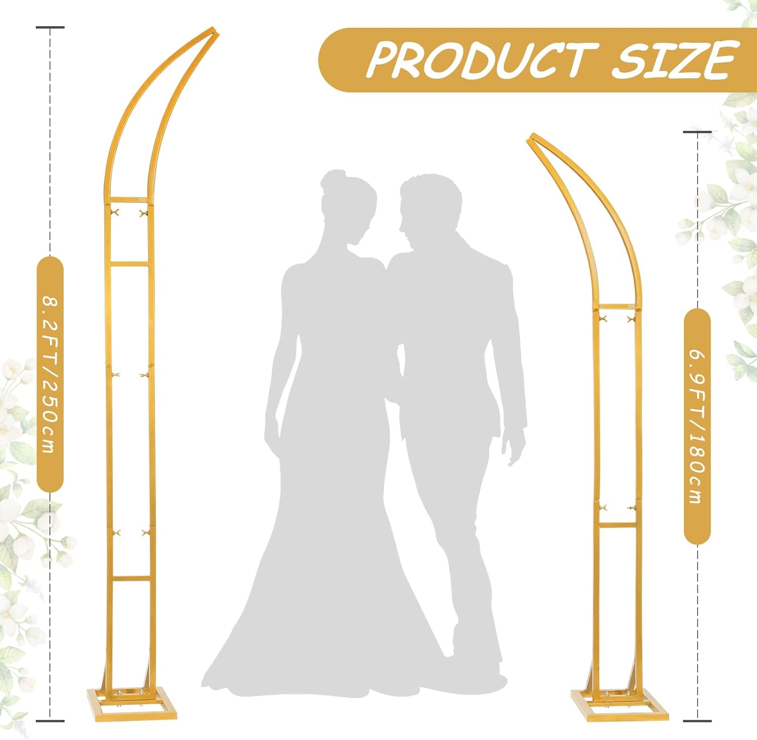 - 【Elegant & Sturdy Wedding Arch 】: The Curved wedding arch frame is made of high-quality metal by die-casting, polishing, spraying, and other processes, strong, sturdy, and not easy to deform. The shiny golden powder coated on the surface prolongs service life anti-rust and corrosion-resistant. It's perfect as a wedding arch, balloon arch stand, or garden arch for gardens displaying beautiful climbing plants like vines and roses,and suitable for both indoor and outdoor events.