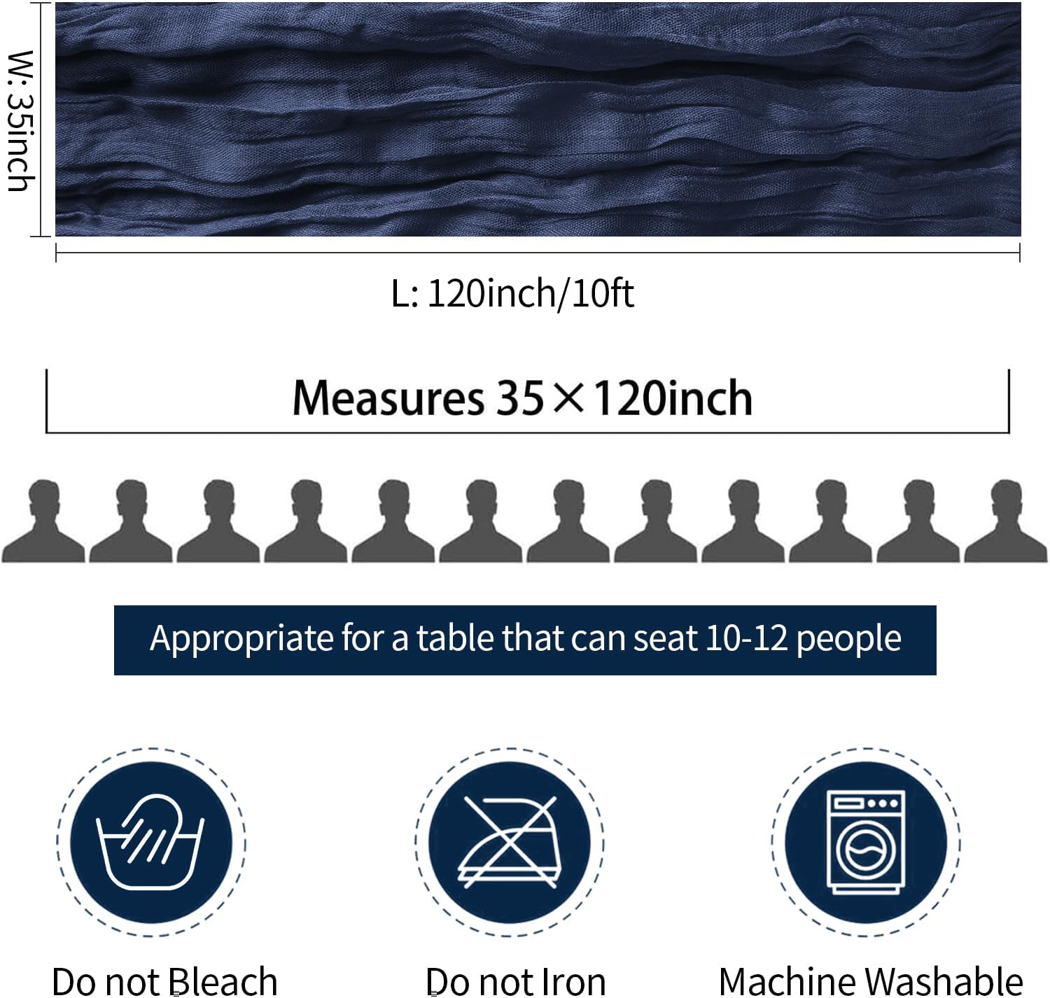 - 🎉【Care Instructions】These pretty navy table runners are recommended for hand wash in cold water with mild detergent, or machine wash in the gentle cycle with a laundry bag; In order to maintain wrinkled texture, please do not iron or use hot water, lay flat or hang dry, which are better for keeping these navy cheesecloth table runner 3 pack for a long time use. Please kindly noted that there might be color variation due to screen resolution and limitations in photography.