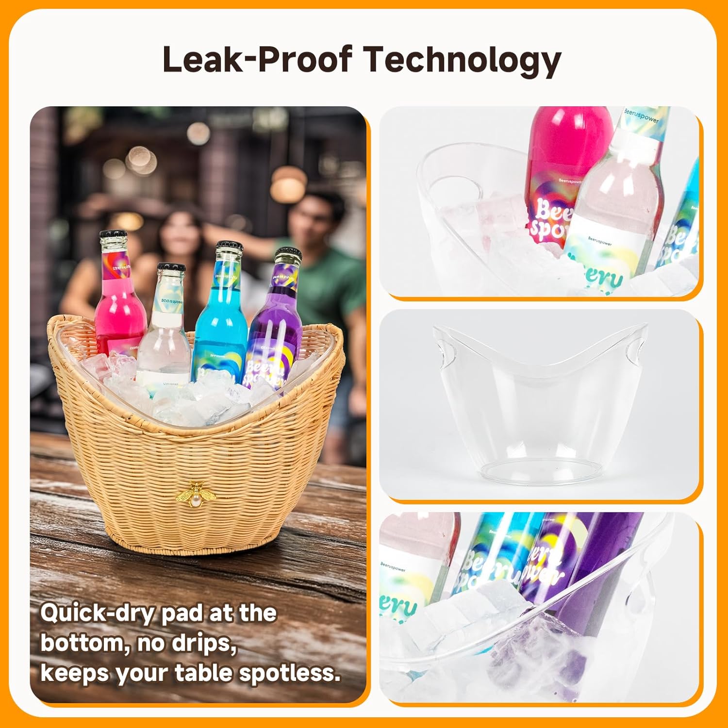 - Leak-Proof & Mess-Free : The innovative diatomaceous earth pad at the bottom of the bucket quickly absorbs melting water, preventing any messy drips onto your surfaces. Enjoy your drinks without the worry of spills and clean up with ease.