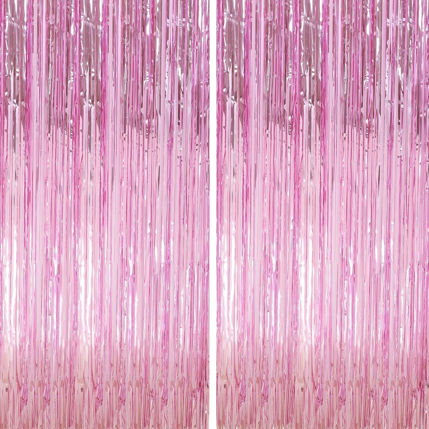 6 Pack Pink Foil Fringe Curtains Streamers Party Decorations 3.3 x 8.2 ft, Pink Tinsel Curtain Fringe Backdrop for Parties, Door Fringe Birthday Streamers, Barbie Backdrop Birthday Party Decorations