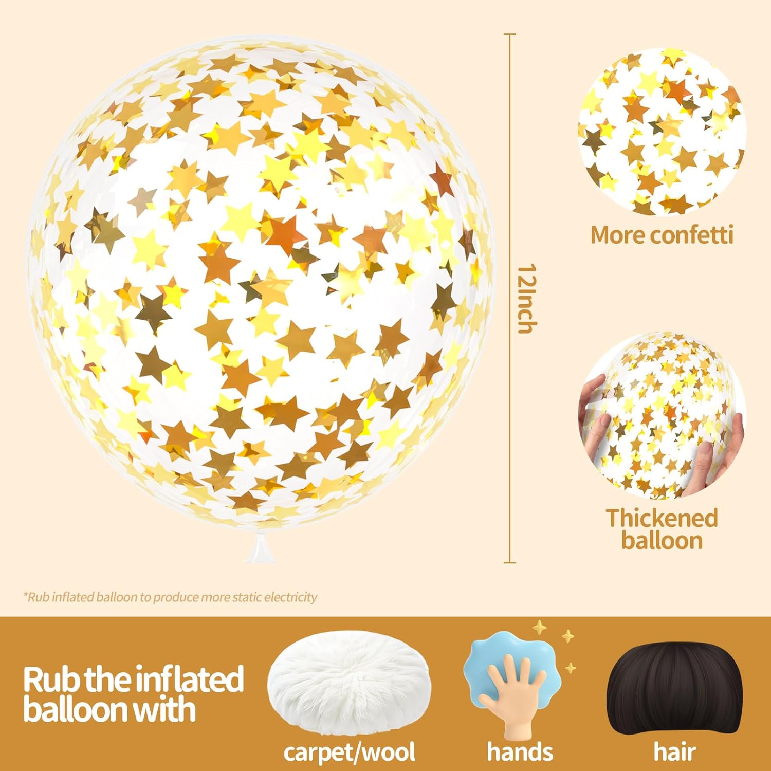 VHUWE 25 Pcs Gold Star Confetti Balloons, 12 Inch Clear Latex Balloon with Confetti Inside for Birthday Party Baby Shower Graduation Engagement Bridal Shower Decorations Supplies - Star Confetti