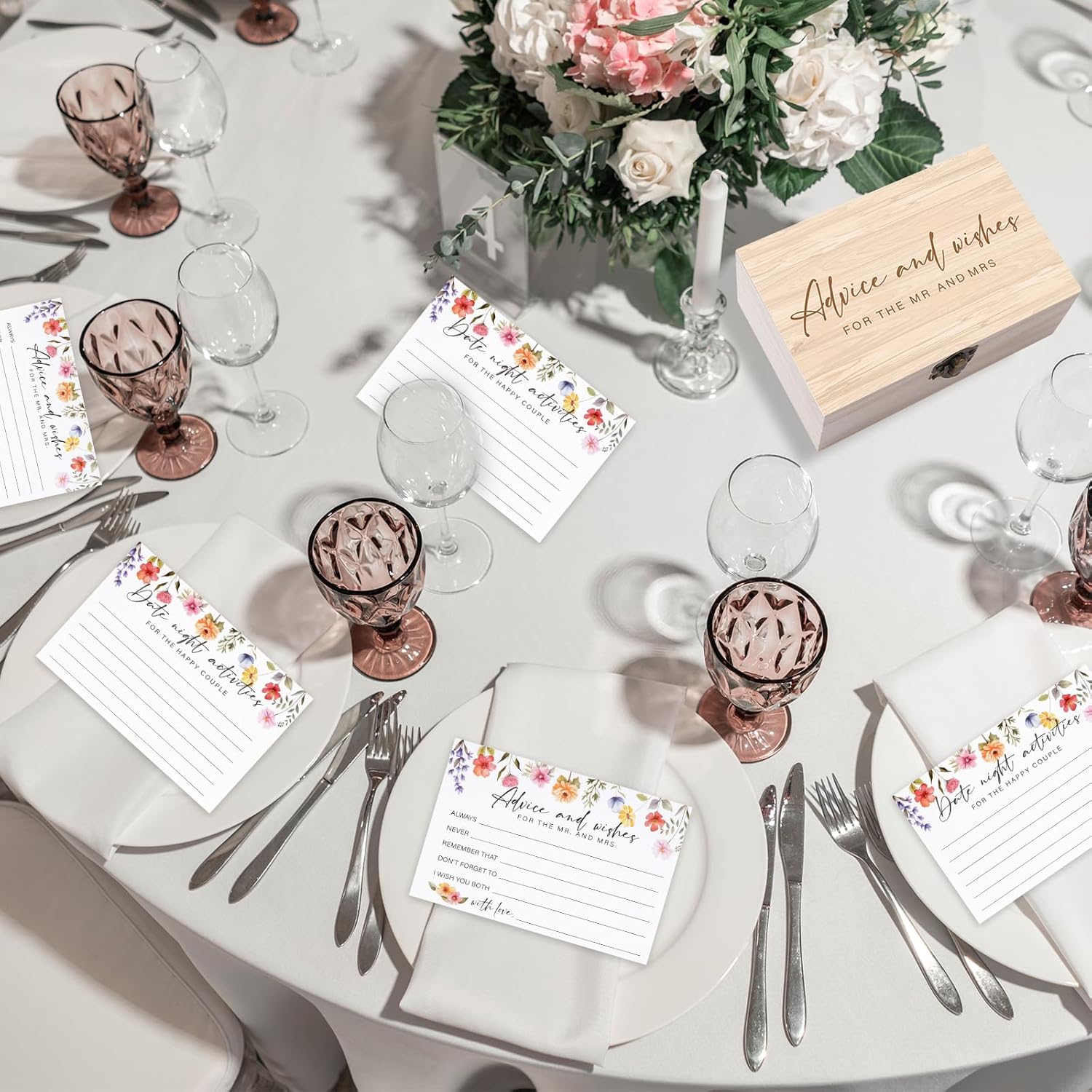 - Weeding Advice and Wish Cards Wooden Box: there are 80pcs pink rose wedding advice and wishes cards in the package,2pcs black pens,1pcs wooden box,2pcs folded instruction card,so your friend and family can have fun when giving advice and well wishes for couple life's big moments