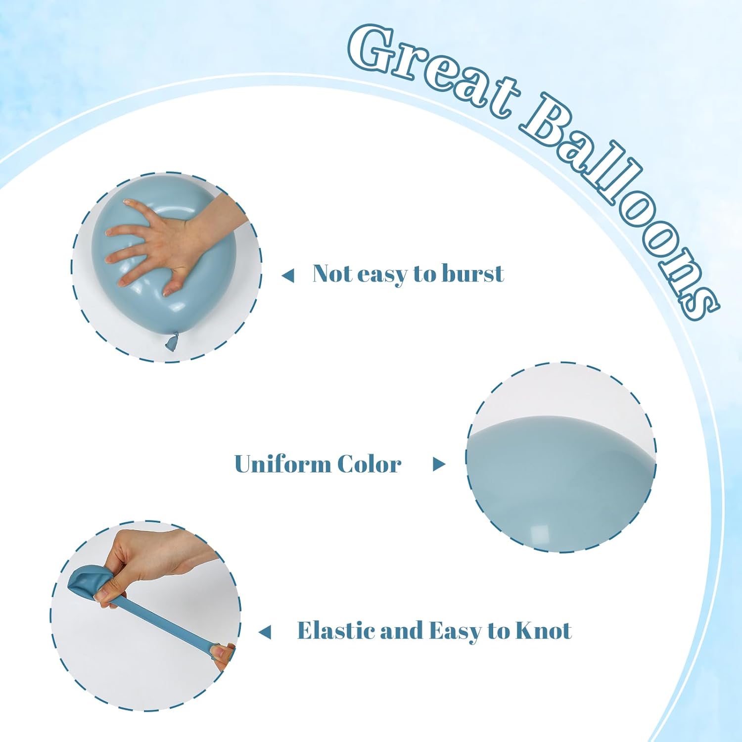 - What You Will Get: The package includes 12inch brown balloonsx20, 12inch dusty blue balloonsx20, 12inch pastel blue balloonsx10, 12inch sand white balloonsx10, glue dotsx20, blue ribbonx1