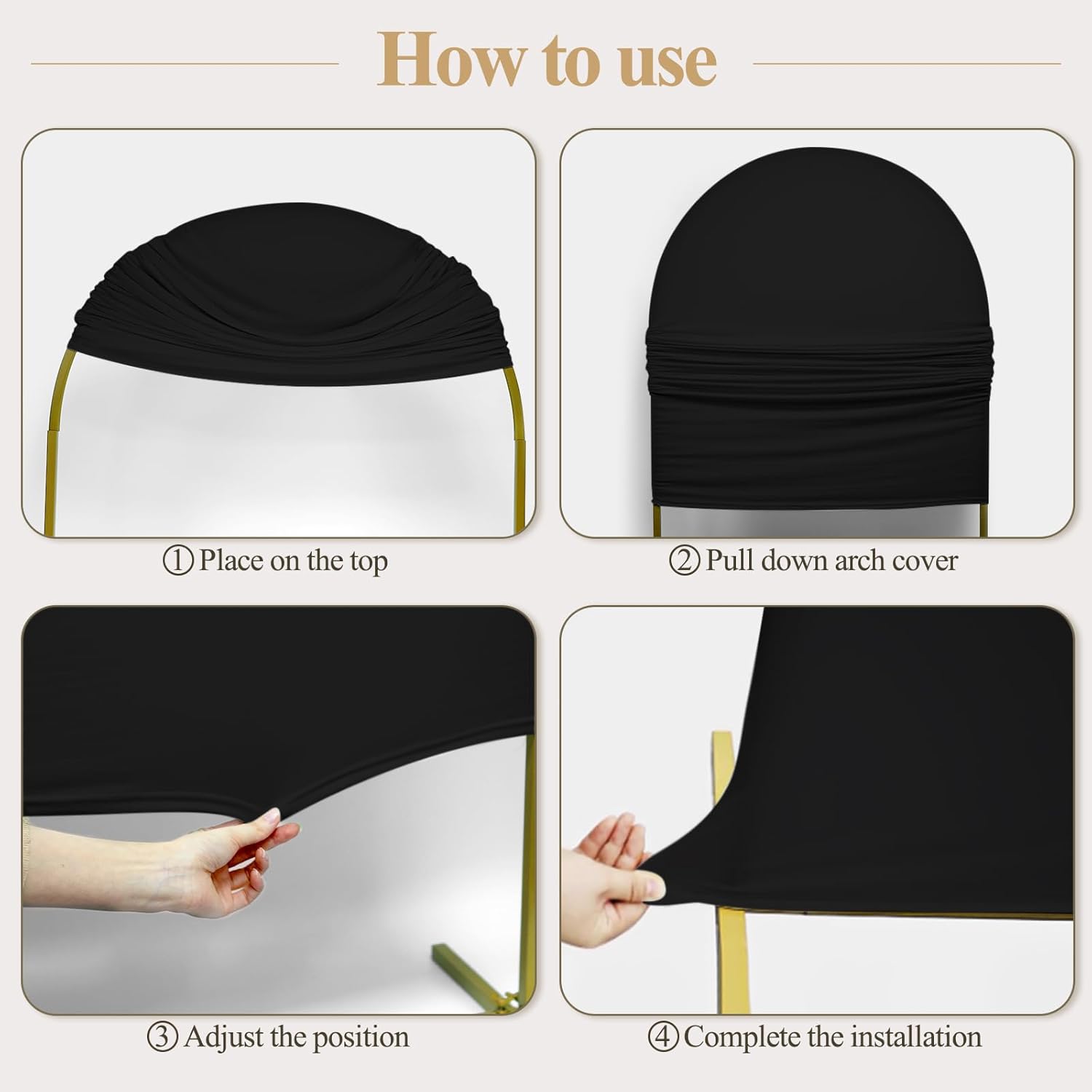 Ledido Wedding Arch Backdrop Cover 6FT 7.2FT Arch Covers 2Set Fitted Stretchy Spandex Round Top Stand Backdrop Cover for Wedding Banquet Ceremony Birthday Party Baby Shower Event Decoration,Black