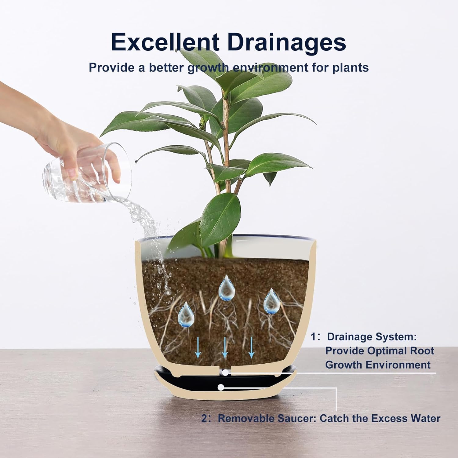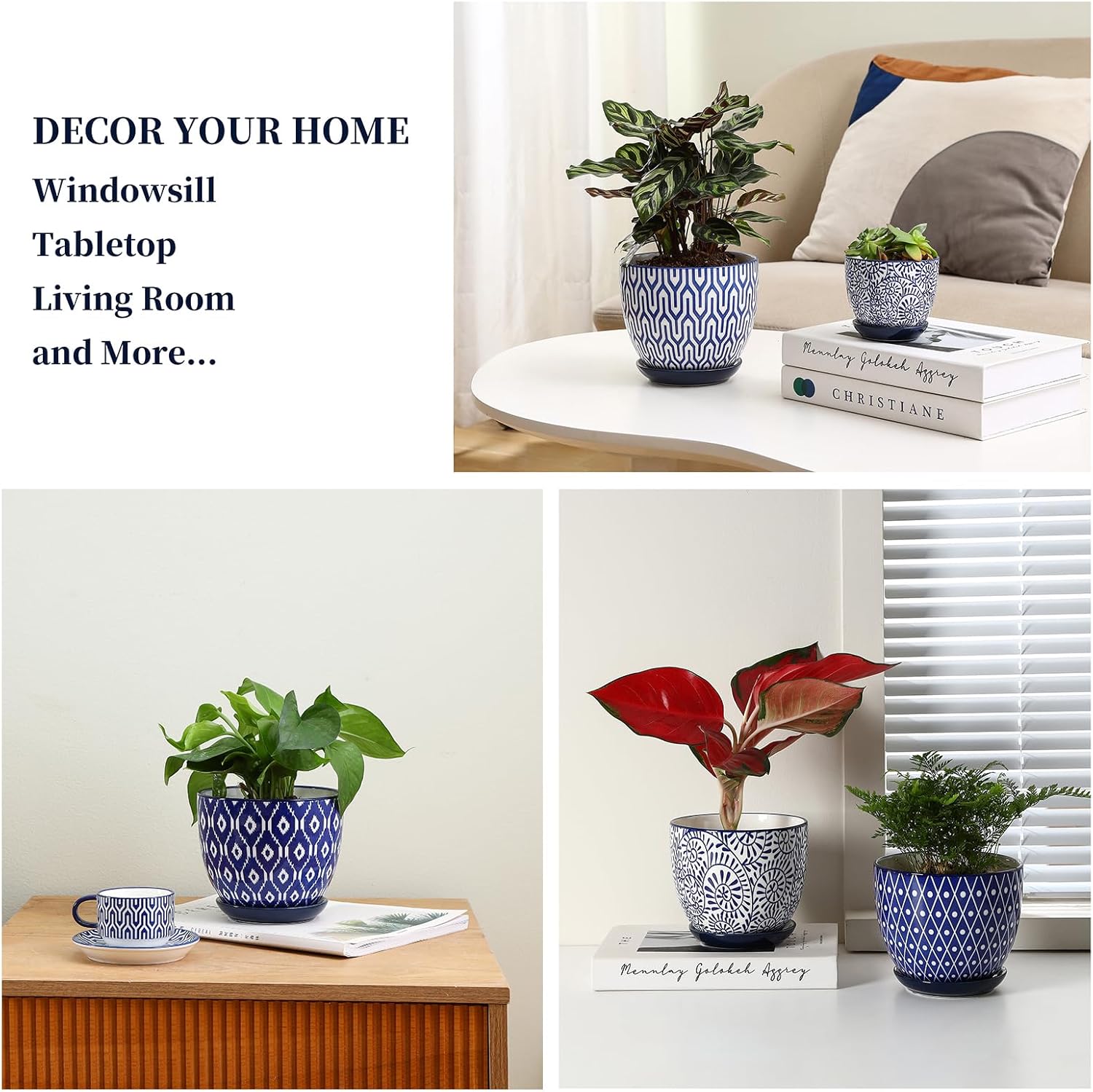 - 【GOOD QUALITY & EASY CLEANUP】These flower pots are fired at high temperatures to ensure they can withstand prolonged exposure to wind and sunlight without deformed, faded, or paint off. The complete smooth texture inner & outside makes clean a breeze. Let the indoor pots for plant always look fresh and new.