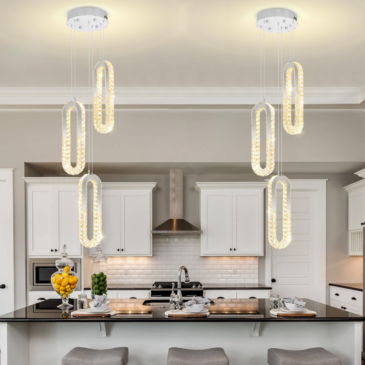 3-Light Modern Pendant Light for Kitchen Island Crystal Ring Chandelier Silver LED Pendant Lighting Fixture for Dining Room Kitchen Living Room Foyer Hallway Bedroom