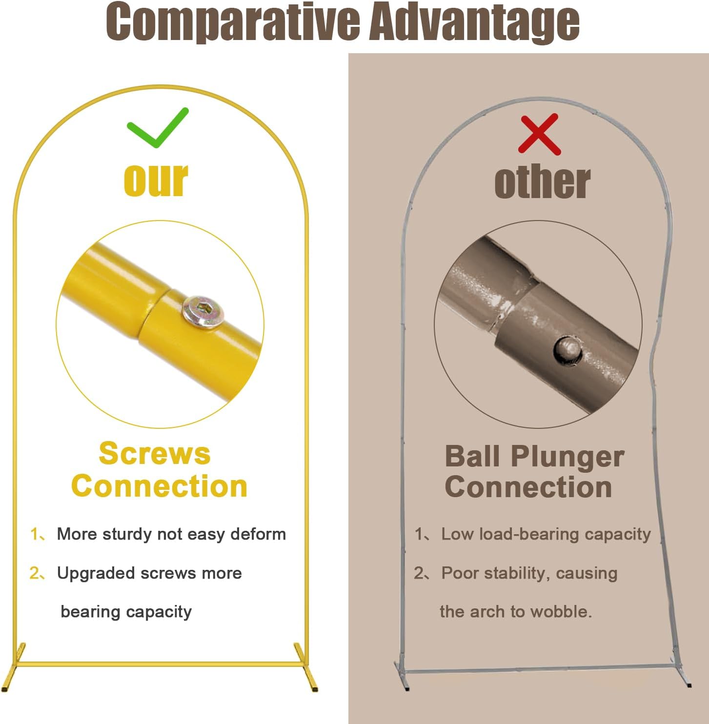- ⭐Size Guide - Arch Backdrop Stand and Cover Set: The size of arch backdrop stand set about are 2.6FTx6FT(W x H), 4FTx7.2FT(W x H) with gold arch cover set. Metal arch backdrop stand set add a graceful and striking look for your party or event.