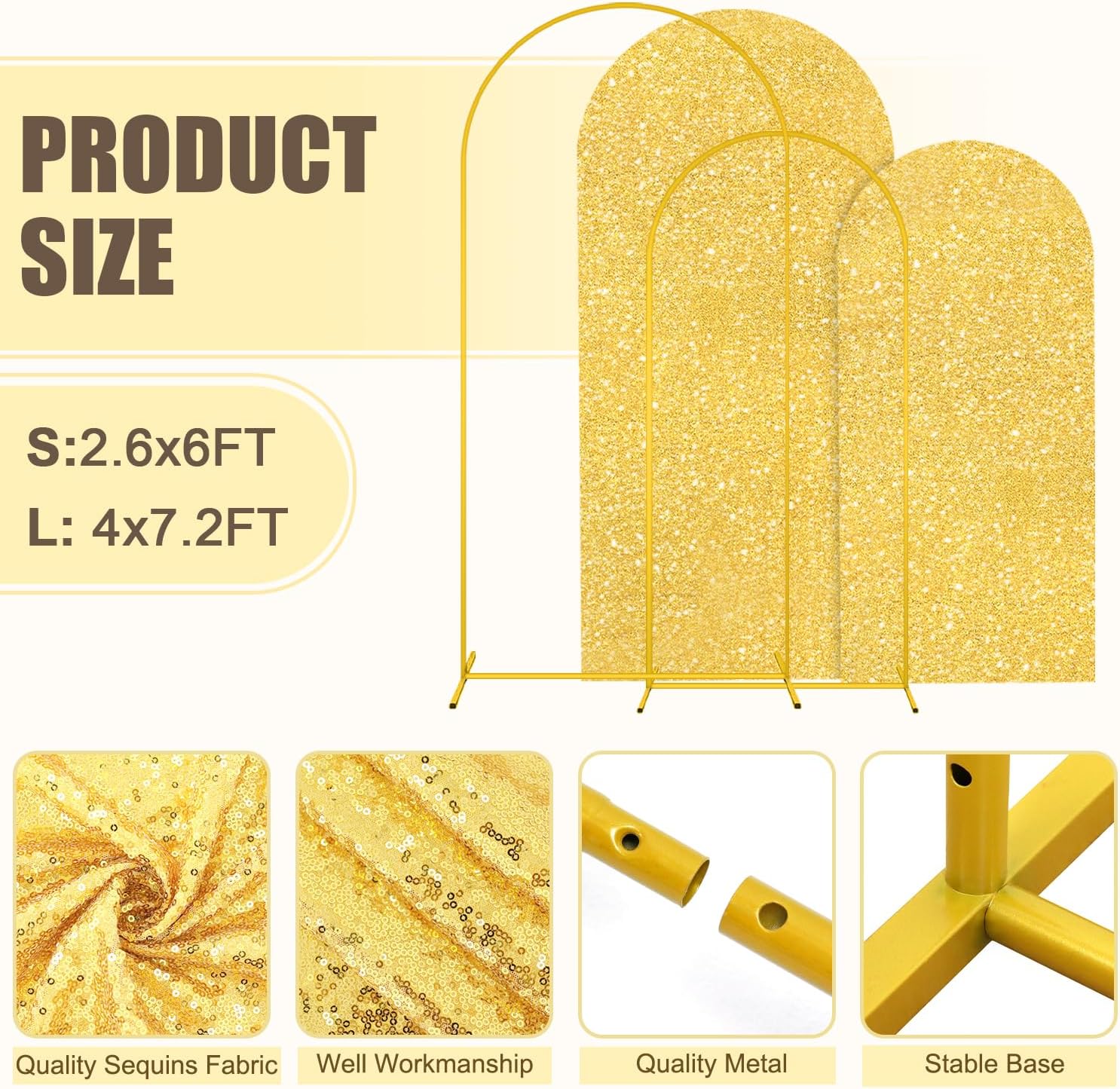 MODFUNS Arch Backdrop Stand and Cover Set 6&7.2ft Gold Sequins Arch Cover Metal Arch Backdrop Stand Set of 2 Wedding Arch Frame with Covers for Reception Birthday Party Decorations