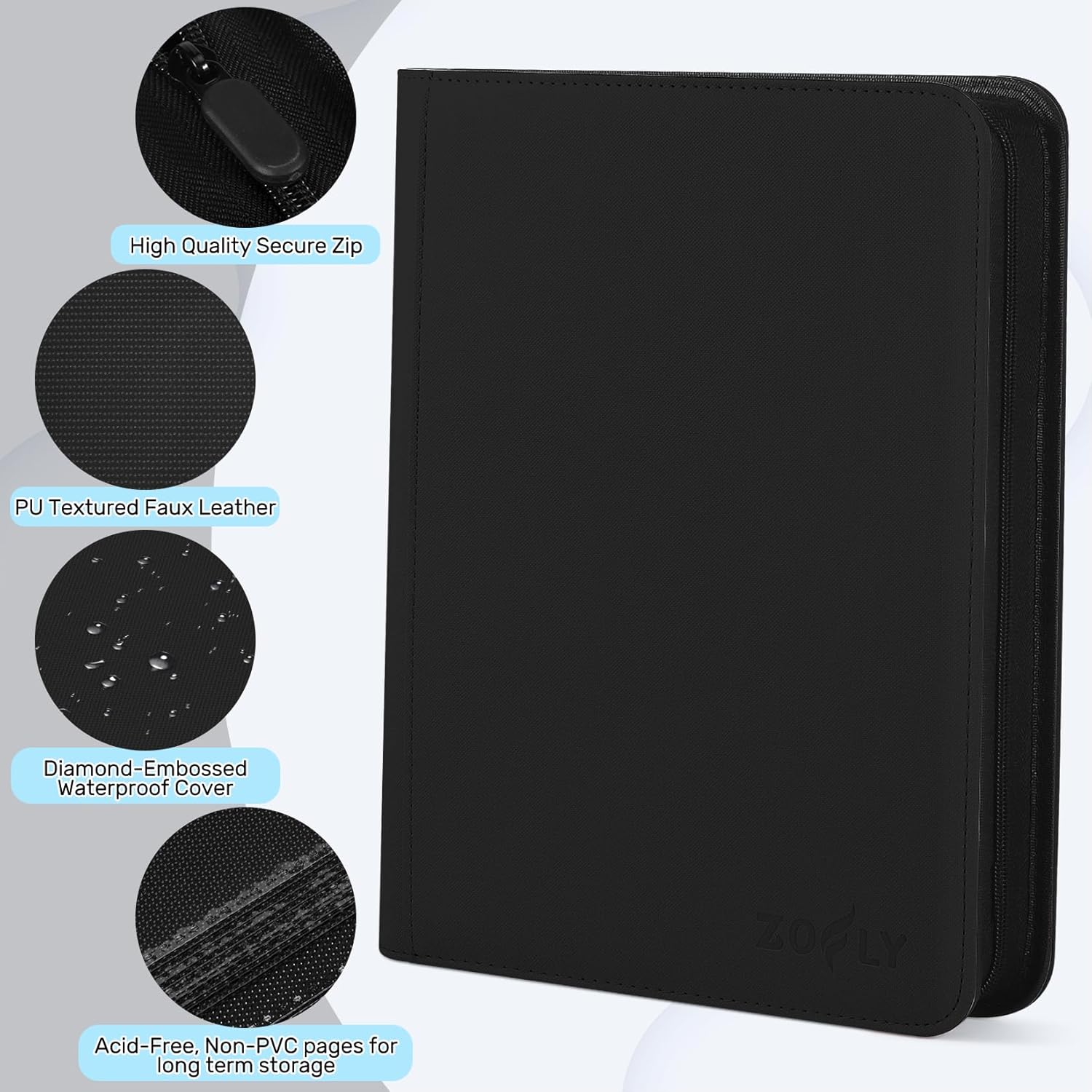 - Maximum Protection: Designed with thickly padded, ultra rigid exterior case to prevent card bending, and durable zipper for further protection from dust and dirt. This water-resistant card binder with premium PU textured faux leather offers trusted durability and superior security for your cards.